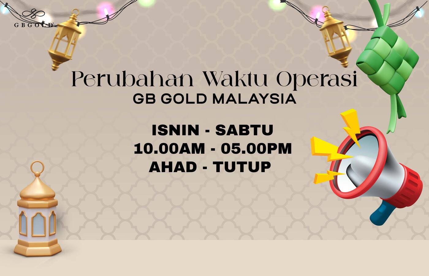 𝐏𝐄𝐍𝐔𝐓𝐔𝐏𝐀𝐍 𝐒𝐄𝐌𝐄𝐍𝐓𝐀𝐑𝐀 𝐎𝐏𝐄𝐑𝐀𝐒𝐈 𝐒𝐘𝐀𝐑𝐈𝐊𝐀𝐓.Makluman kepada semua pelanggan GB Gold Sdn. Bhd. (GB Gold Malaysia),.Dimaklumkan bahawa Syarikat GB Gold Sdn. Bhd. (GB Gold Malaysia) akan beroperasi seperti biasa pada Tahun Baru Cina (17 dan 18 ...