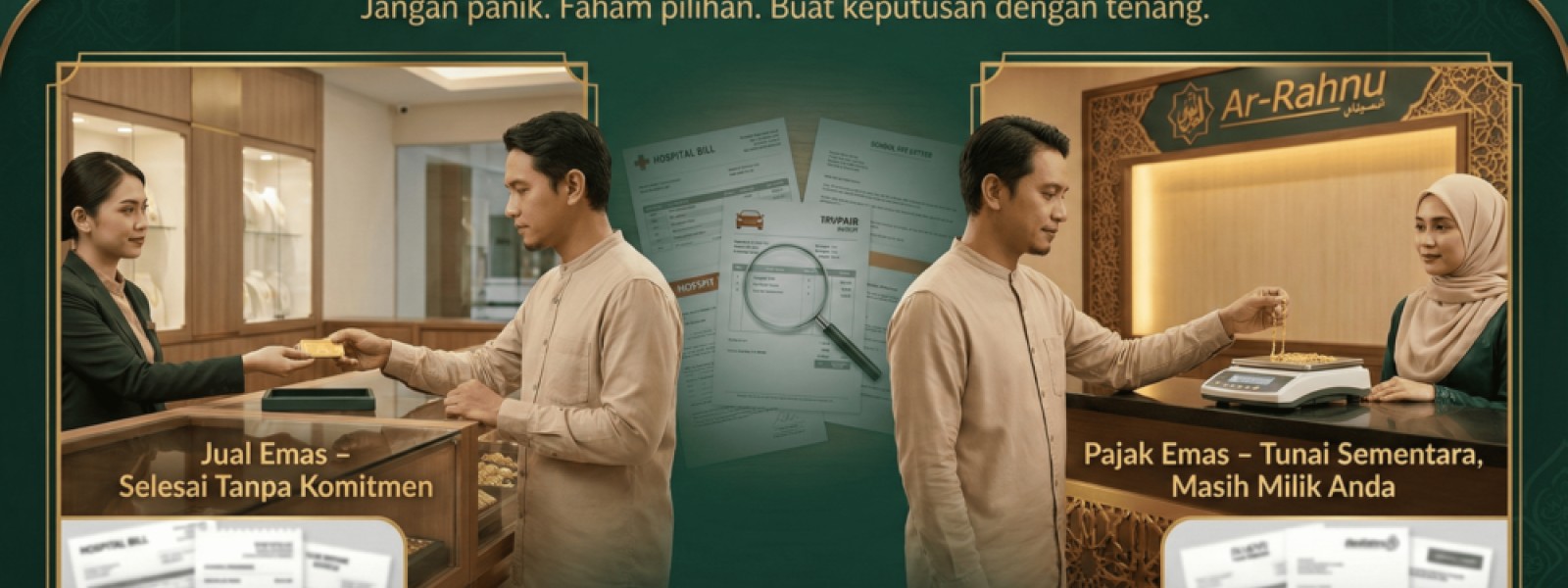 Kadang-kadang hidup ini tidak beri kita notis awal sebelum ujian datang mengetuk pintu. Tiba-tiba kereta buat hal di tengah bulan ketika baki akaun semakin menipis, bil perubatan datang serentak dengan yuran sekolah anak, atau komitmen lain muncul tanpa kita sempat bersedia dari segi emosi dan kewangan. Dalam keadaan seperti ini, fikiran memang mudah jadi kusut dan keputusan pula terasa perlu dibuat dengan segera. Dan kalau dalam simpanan kita ada emas, soalan yang hampir pasti muncul ialah lebih baik jual terus atau pajak sahaja dahulu? Baik, kita bincangkan dengan tenang dan rasional supaya keputusan yang dibuat bukan sekadar melepaskan tekanan, tetapi ...