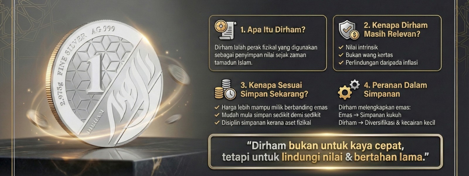 Pernah tak anda pegang sekeping dirham, rasa sejuknya logam itu di tapak tangan, lalu terdetik satu soalan kecil dalam hati: “Masih relevan ke dirham zaman sekarang?”Soalan ini bukan pelik. Malah, ia semakin kerap ditanya, terutama bila orang mula sedar bahawa nilai wang kertas makin susut, kos hidup makin mencanak, dan simpanan di bank terasa semakin ‘ringan’ walaupun angka nampak bertambah. Dirham bukan nama asing dalam sejarah kewangan Islam. Ia bukan sekadar logam perak. Dirham pernah menjadi alat tukaran, ukuran nilai, dan simbol kestabilan ekonomi pada zaman kegemilangan tamadun Islam. Tetapi persoalannya hari ini, adakah dirham ...