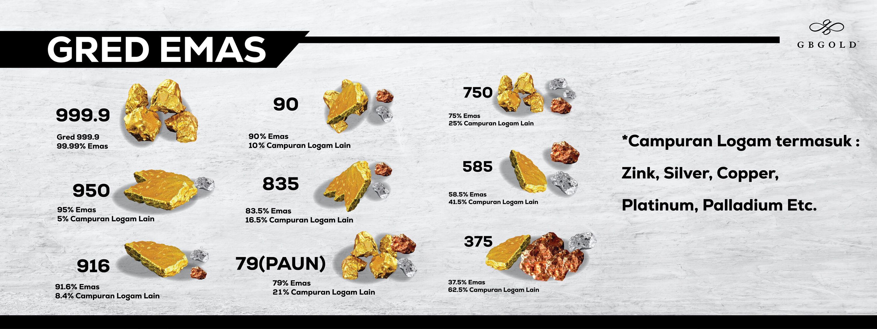 Ini antara gred-gred emas yang paling banyak digunakan di Malaysia.