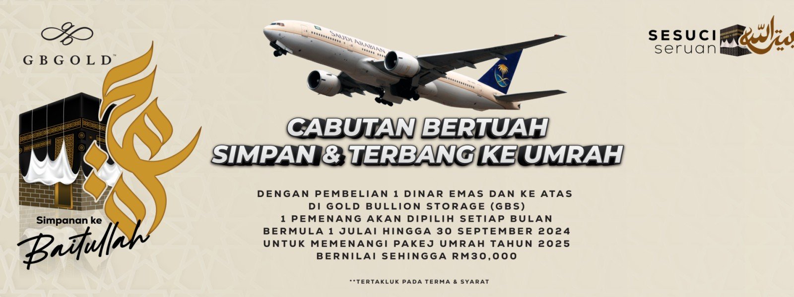 Perkara: Cabutan bertuah Simpan dan Terbang ke Umrah. Sukacitanya, Syarikat Grand Bullion Gold Sdn. Bhd. (GB Gold Malaysia) akan mengadakan cabutan bertuah Simpan dan Terbang ke Umrah. Disini kami memaklumkan ...