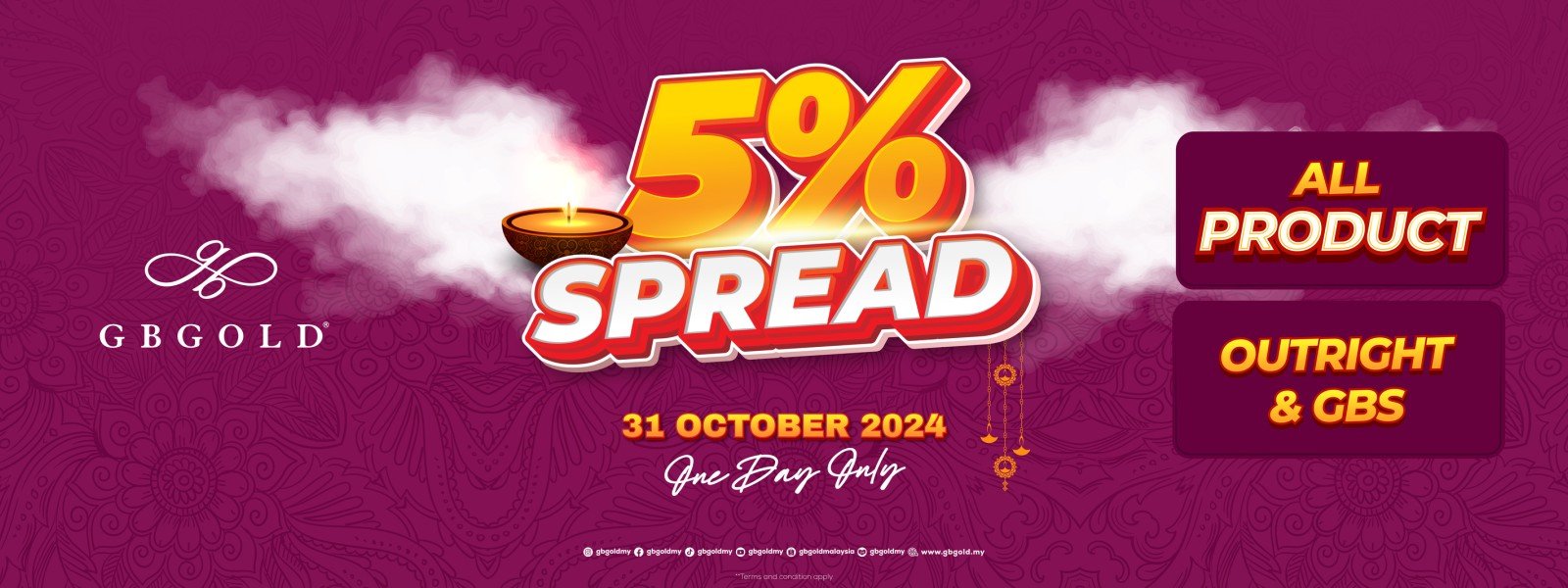 Grand Bullion Gold Sdn. Bhd. (GB Gold Malaysia) menawarkan 5% spread untuk semua produk emas sempena Deepavali. Tawaran satu hari sahaja itu adalah bagi menghargai kesemua pelanggan setia GB Gold yang ...