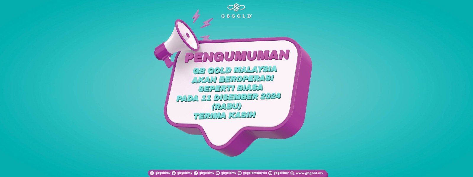 𝐌𝐚𝐤𝐥𝐮𝐦𝐚𝐧 𝐤𝐞𝐩𝐚𝐝𝐚 𝐬𝐞𝐦𝐮𝐚 𝐩𝐞𝐥𝐚𝐧𝐠𝐠𝐚𝐧 𝐲𝐚𝐧𝐠 𝐝𝐢𝐡𝐨𝐫𝐦𝐚𝐭𝐢, GB Gold Sdn. Bhd. (GB Gold Malaysia) akan beroperasi seperti biasa pada 11 Disember 2024 (Rabu) bermula pukul 10 pagi hingga 6 petang. Segala aktiviti jualan dan pengambilan emas di HQ GB ...