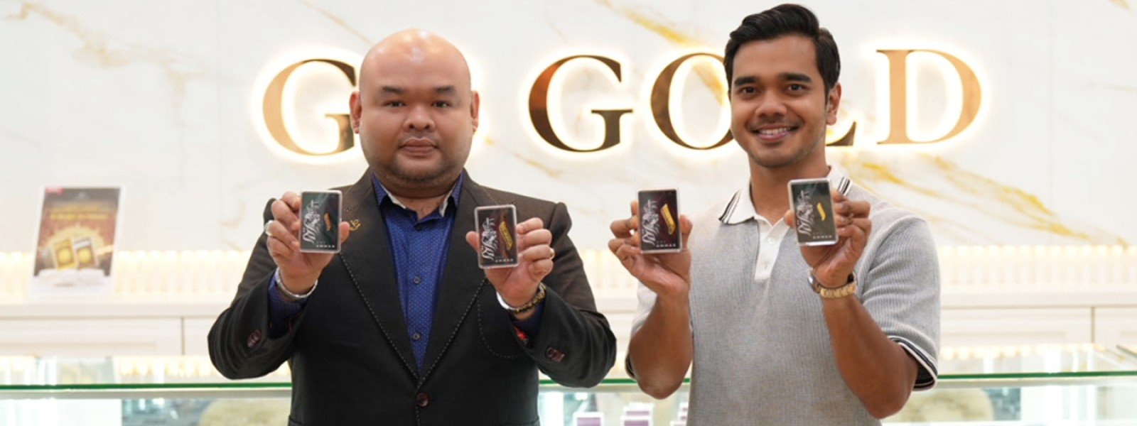 Pengasas dan Ketua Pegawai Eksekutif GB Gold, Shahfizzam Moideen (kanan) bersama Alif Satar (kiri) ketika pelancaran koleksi emas berbentuk keris 1 gram dan 1 dinar di GB Gold Shah Alam. - FOTO ...