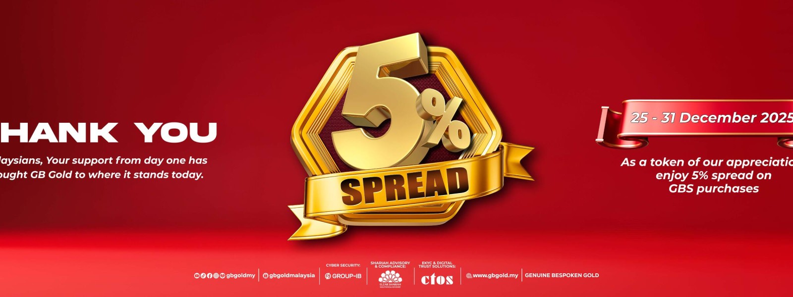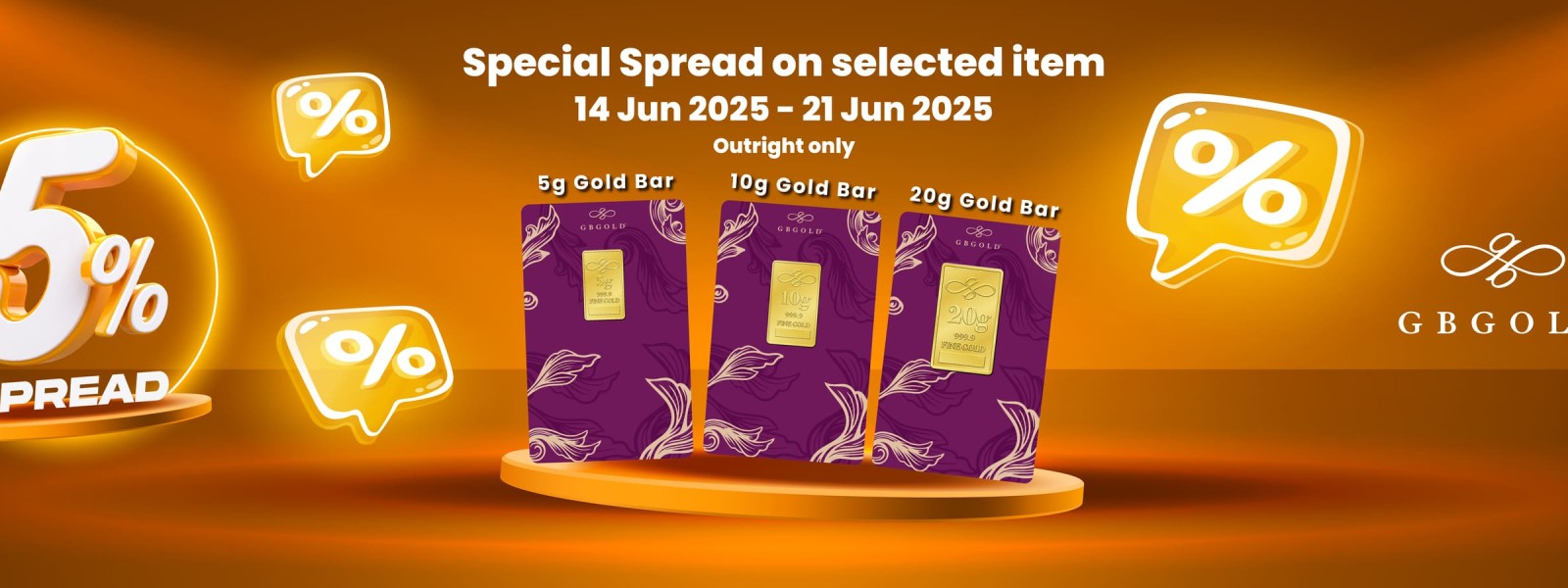 Syarikat GB Gold Sdn. Bhd. (GB Gold Malaysia), menawarkan spread sebanyak 5% bagi pembelian emas di akaun emas Gold Bullion Storage (GBS). Tawaran tersebut diberikan sebagai penghargaan buat semua ahli ...