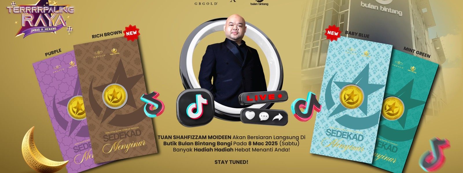 Pengasas dan Ketua Pegawai Eksekutif GB Gold Sdn. Bhd. (GB Gold Malaysia), Tuan Shahfizzam Moideen atau Tuan GB hari ini akan bersiaran secara LIVE menemui anda dari Butik Bulan Bintang, ...