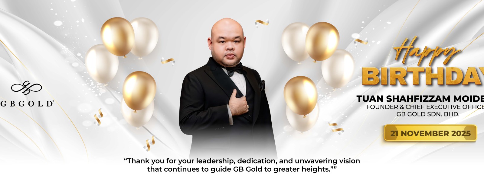 Buat pertama kalinya dalam sejarah GB Gold Sdn. Bhd., (GB Gold Malaysia), Tuan Shahfizzam Moideen atau Tuan GB, berbesar hati berkongsi rezeki dengan semua pelanggan GB Gold, sempena bulan ulangtahun ...