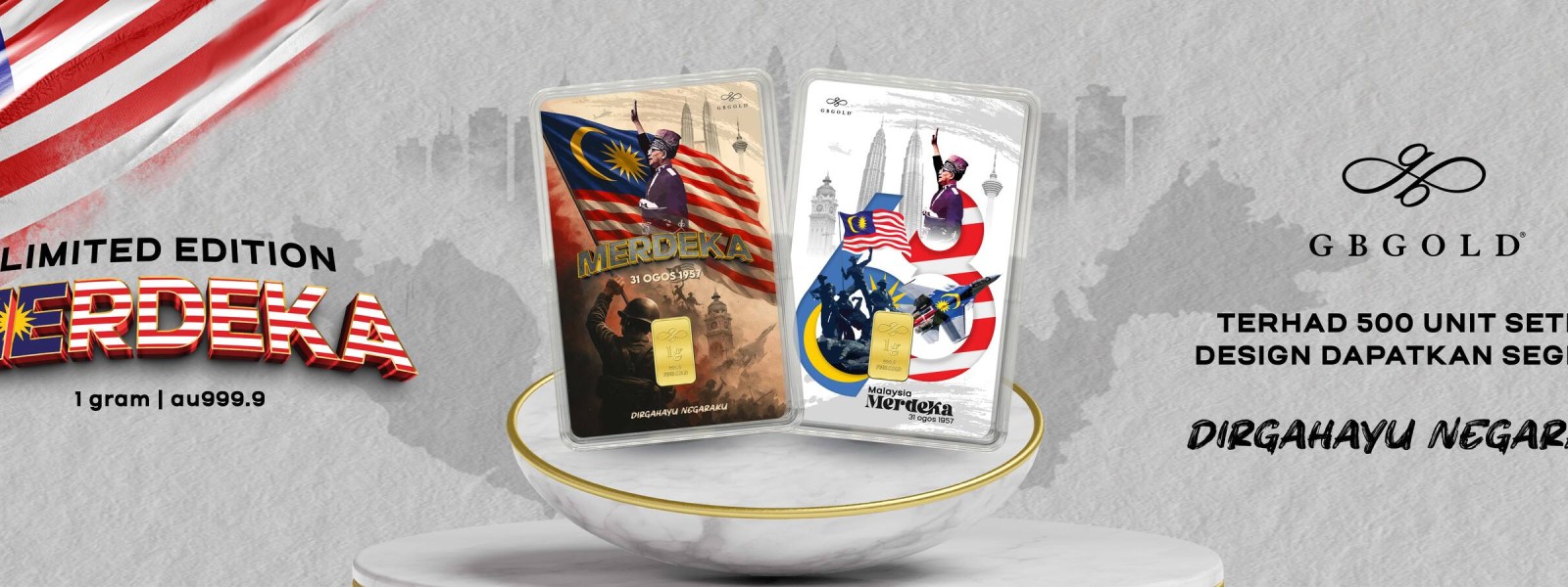 GB Gold Sdn. Bhd. (GB Gold Malaysia) memperkenalkan dua design terbaharu edisi terhad Merdeka hari ini. Ini merupakan julung kali edisi terhad itu dihasilkan dalam dua design berbeza bagi membolehkan ...