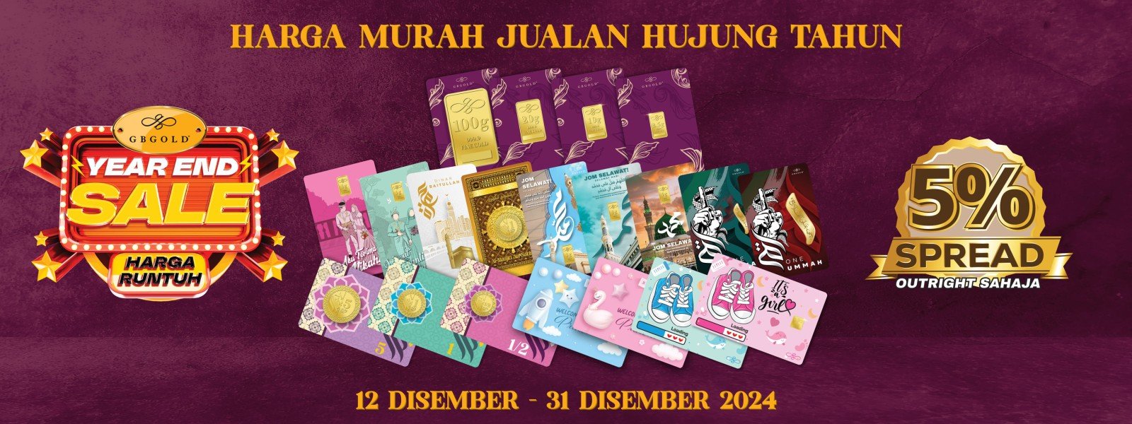 Berita baik buat semua pelanggan, Syarikat GB Gold Sdn. Bhd. (GB Gold Malaysia) menawarkan spread 5% sempena Jualan Akhir Tahun yang berlangsung bermula hari ini, 12 Disember 2024 hingga 31 Disember 2024. Tawaran sah untuk ...