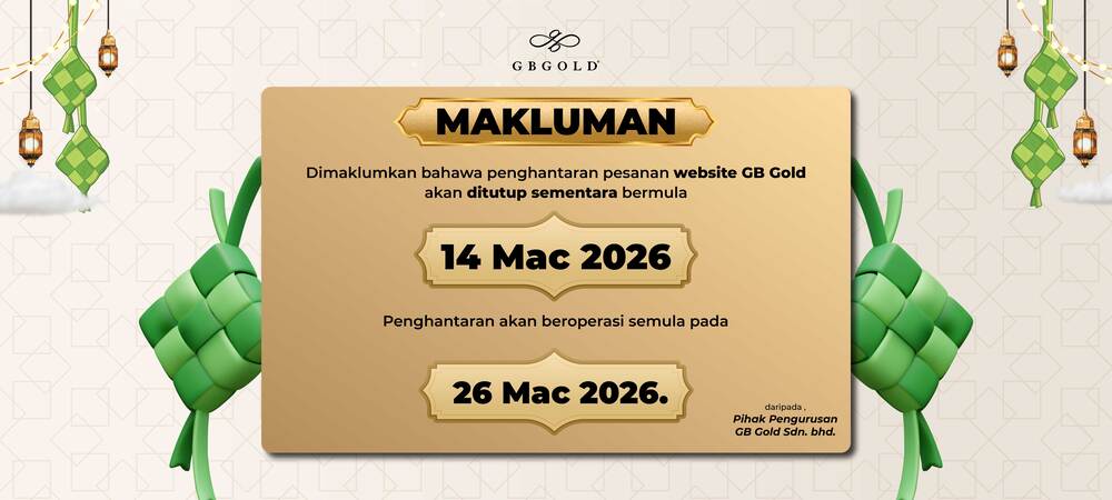 Syarikat GB Gold Sdn. Bhd. (GB Gold Malaysia) akan menutup sementara operasi penghantaran bagi semua pesanan yang dibuat melalui website rasmi GB Gold sempena cuti Perayaan Aidilfitri.