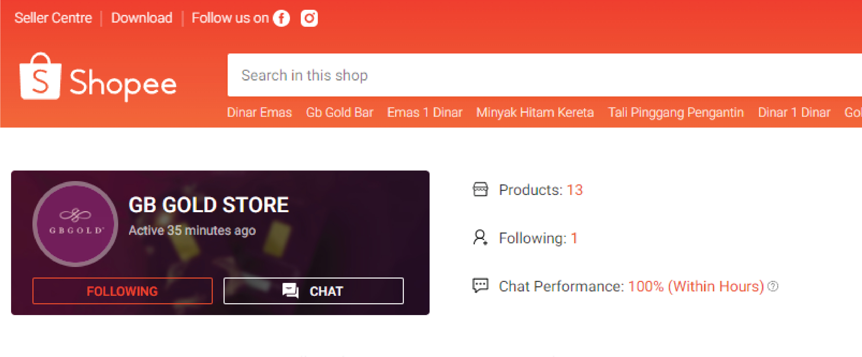 Grand Bullion Gold Sdn. Bhd. (GB Gold Malaysia) kini telah melebarkan sayap ke satu lagi platform jualan dalam talian, Shopee.