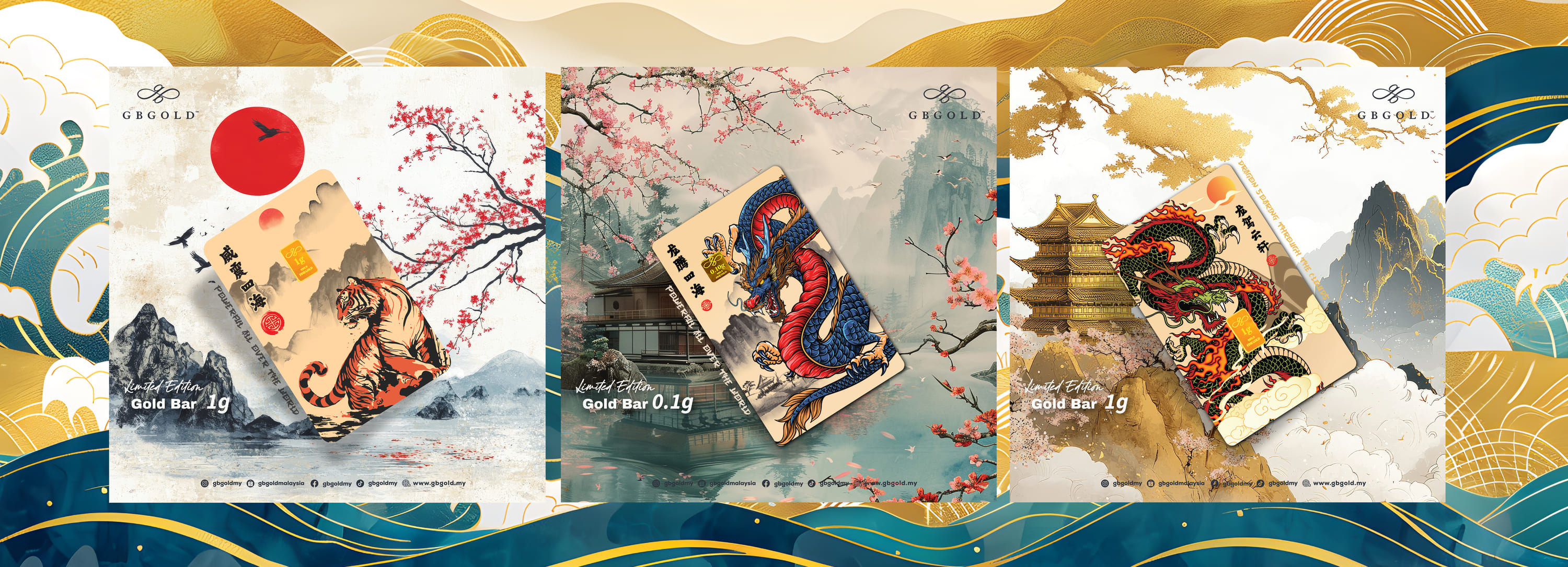 Menambah lebih variasi, Grand Bullion Gold Sdn. Bhd. (GB Gold Malaysia) hari ini tampil dengan 3 rekaan kad goldbar terbaharu, edisi naga dan edisi harimau.