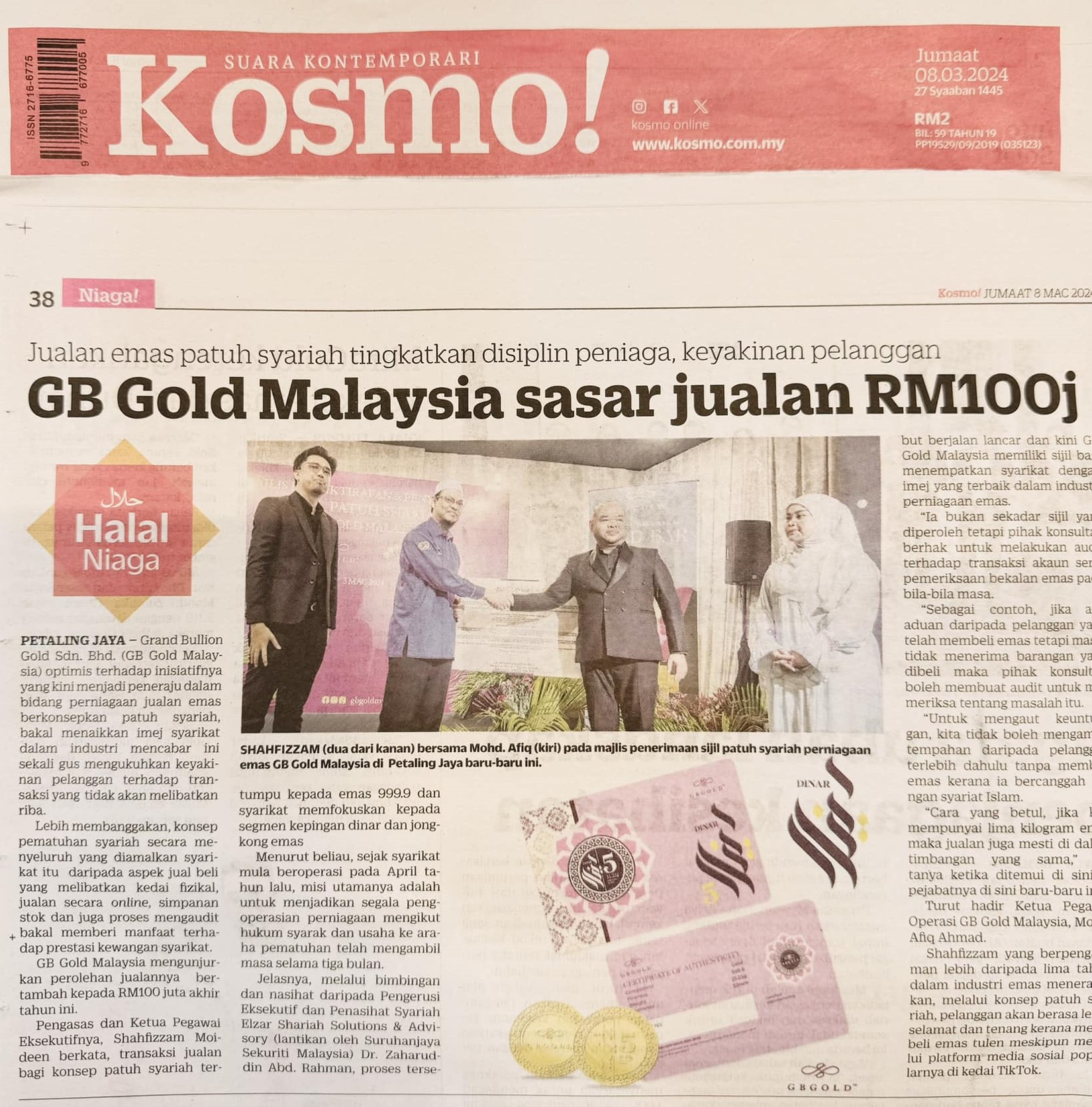Alhamdulillah tarikh keramat 3 Mac 2024 akhirnya memahat sejarah besar buat GB Gold Malaysia dalam Majlis Pengiktirafan dan Penyerahan Sijil Patuh Shariah oleh Elzar Shariah Solutions & Advisory.