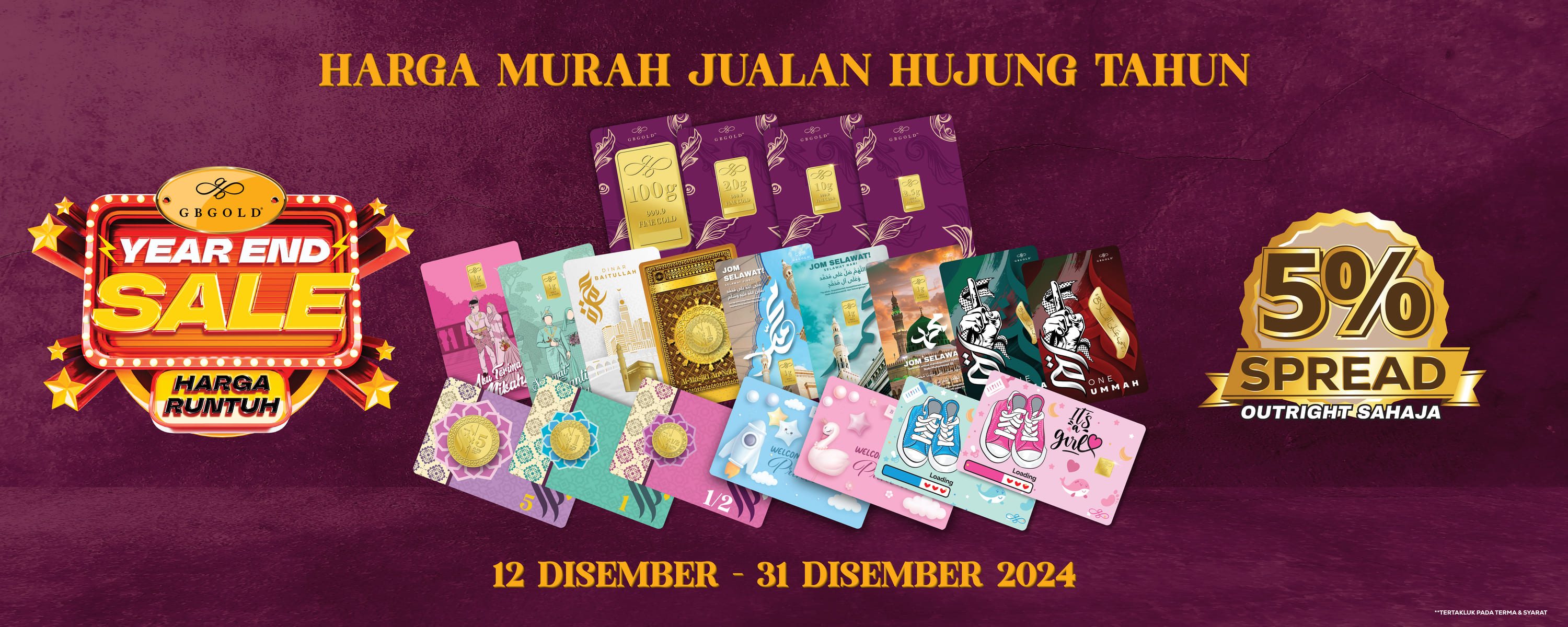 Berita baik buat semua pelanggan, Syarikat GB Gold Sdn. Bhd. (GB Gold Malaysia) menawarkan spread 5% sempena Jualan Akhir Tahun yang berlangsung bermula hari ini, 12 Disember 2024 hingga 31 Disember 2024.