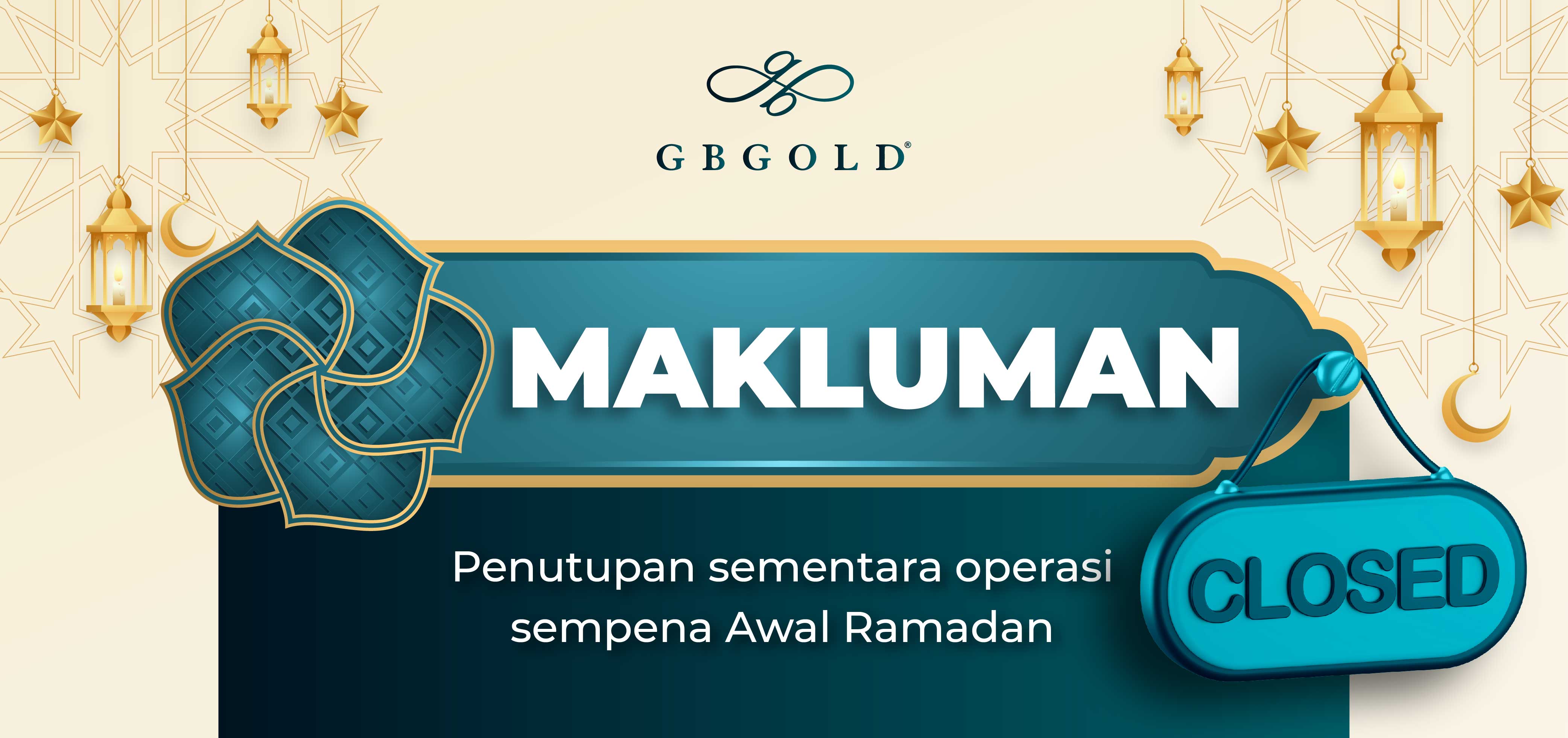 Dimaklumkan bahawa Syarikat GB Gold Sdn. Bhd. (GB Gold Malaysia) akan beroperasi seperti biasa pada Tahun Baru Cina (17 dan 18 Februari 2026) dan akan menutup sementara operasi syarikat pada 19 Februari 2026 sempena Awal Ramadan.