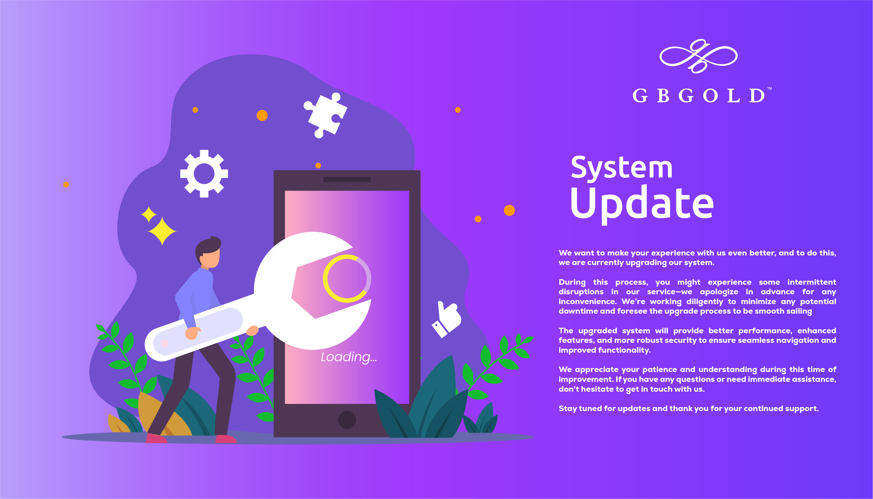 We want to make your experience with us even better, and to do this, we are currently upgrading our system.