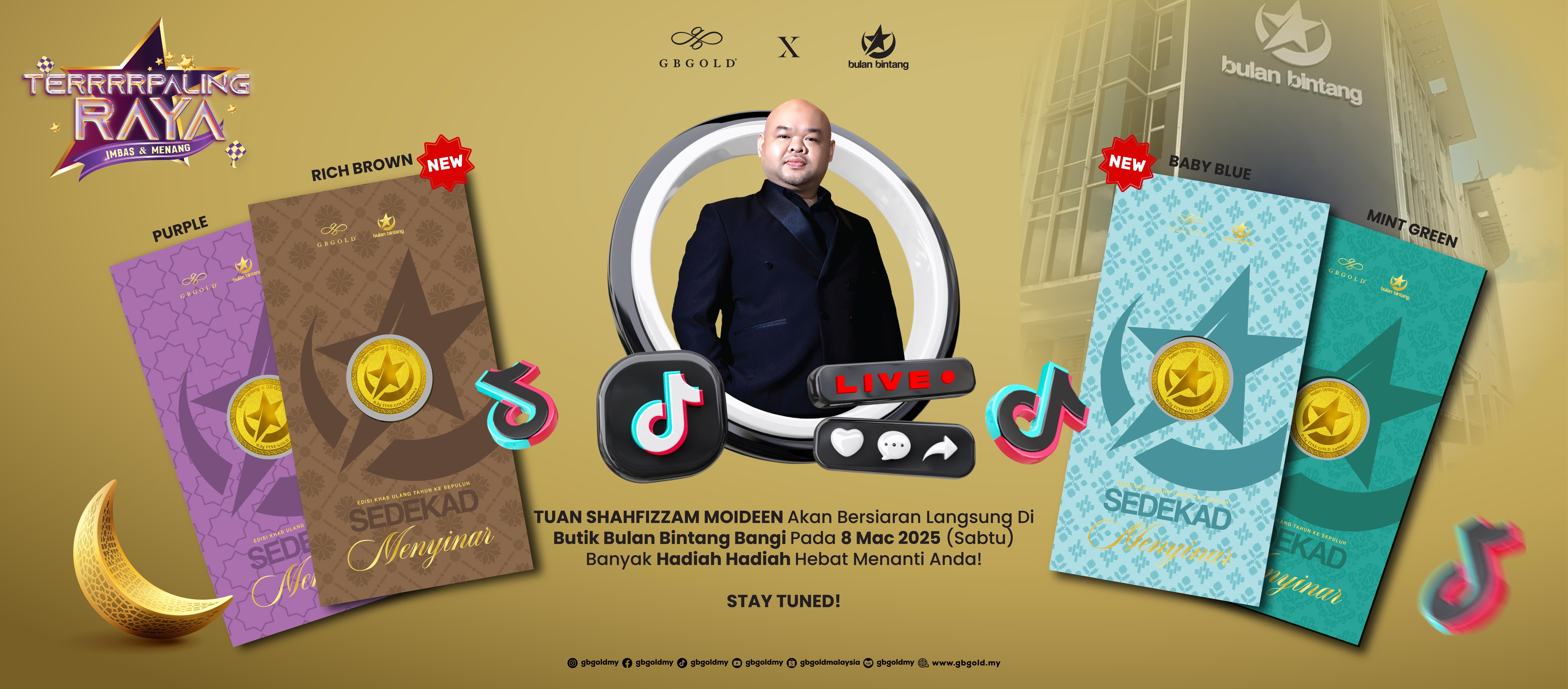 Pastikan anda tidak ketinggalan menyaksikan siaran langsung Tuan GB menerusi TikTok GB Gold.
