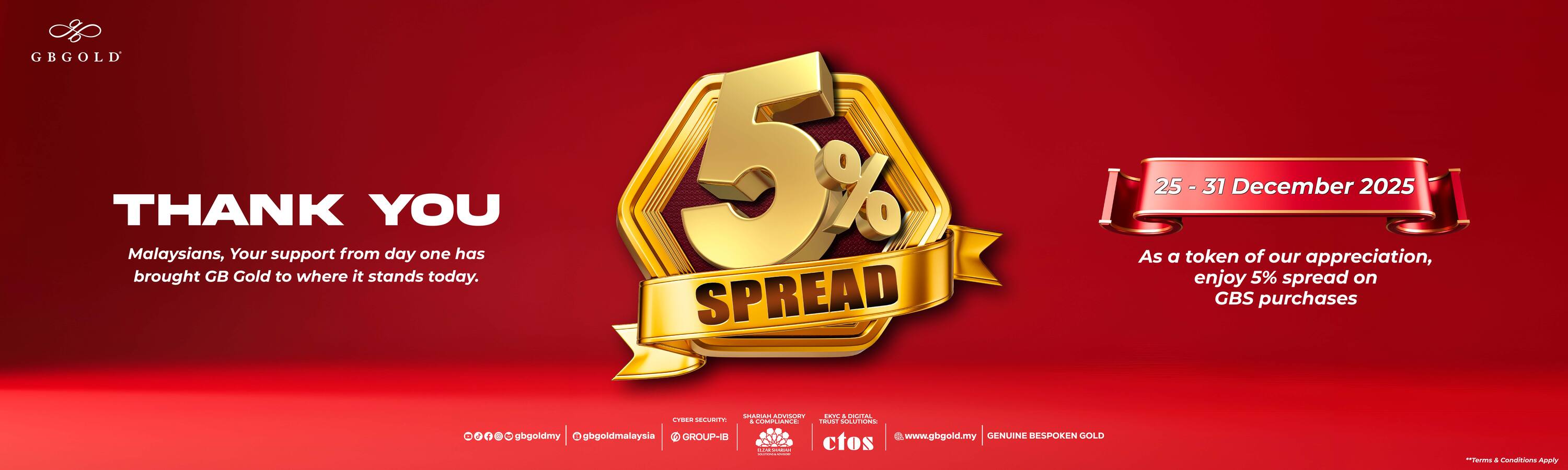 Syarikat GB Gold Sdn. Bhd. (GB Gold Malaysia), menawarkan spread sebanyak 5% bagi pembelian emas di akaun emas Gold Bullion Storage (GBS).