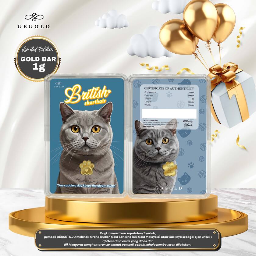Introducing the GB Gold Cat British Gold Bar - 1g (Emas 999.9), the perfect addition to your collection of gold decorations and accessories. Crafted with 999.9/24K purity, this gold bullion bar is a must-have for any discerning collector.