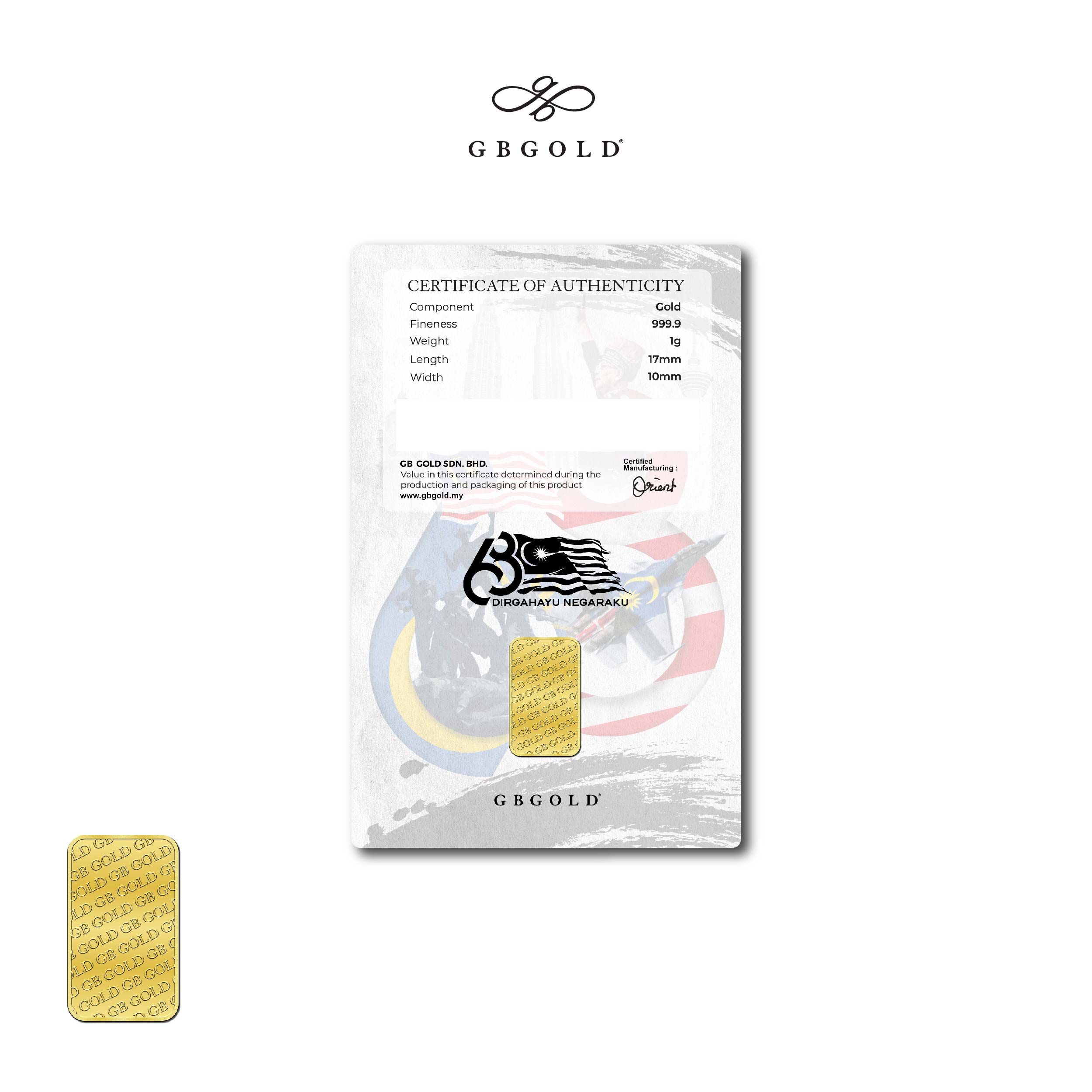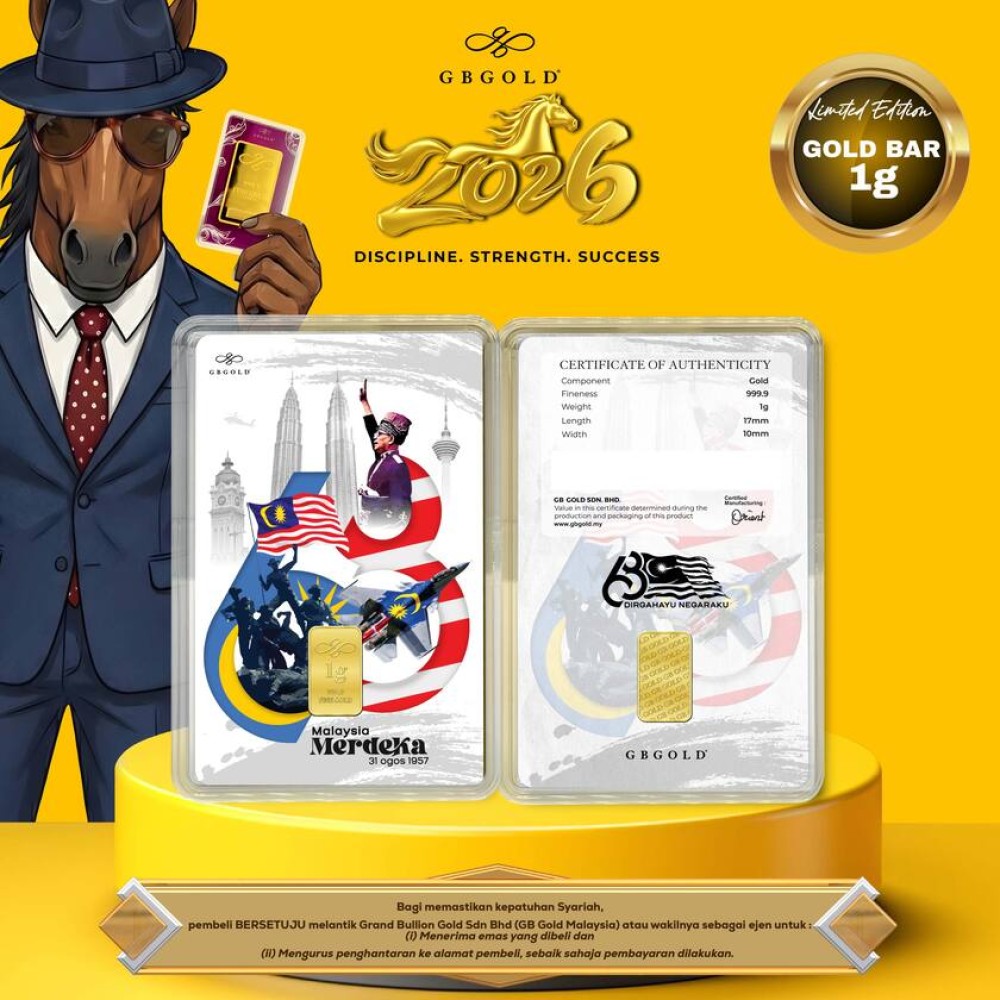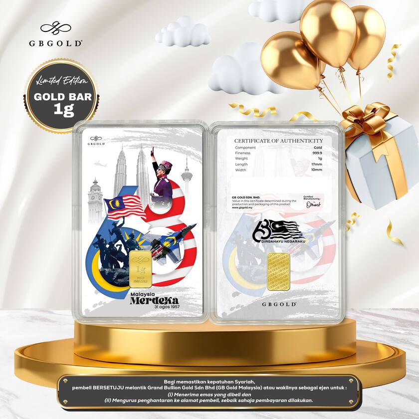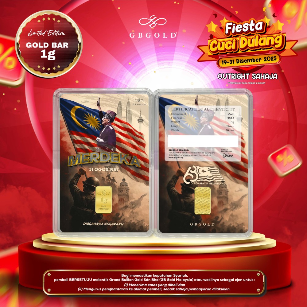Introducing the GB Gold Merdeka Gold Bar 1g (Emas 999.9), the perfect addition to your collection of gold decorations and accessories. Crafted with 999.9/24K purity, this gold bullion bar is a must-have for any discerning collector.