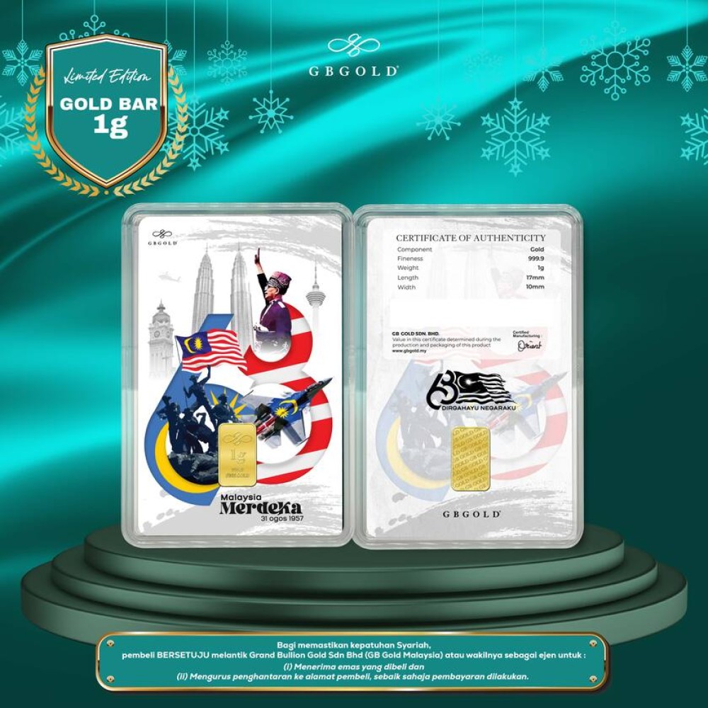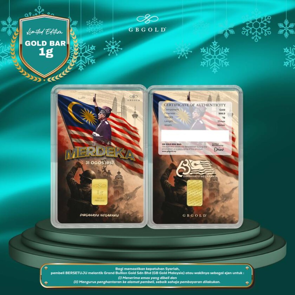 Introducing the GB Gold Merdeka Gold Bar 1g (Emas 999.9), the perfect addition to your collection of gold decorations and accessories. Crafted with 999.9/24K purity, this gold bullion bar is a must-have for any discerning collector.