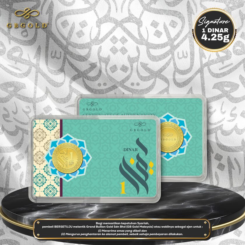Introducing the GB GOLD Signature 1 Dinar 4.25gm (Emas 999.9), the perfect addition to your collection of gold decorations and accessories. Crafted with 999.9/24K purity, this gold dinar is a must-have for any discerning collector.