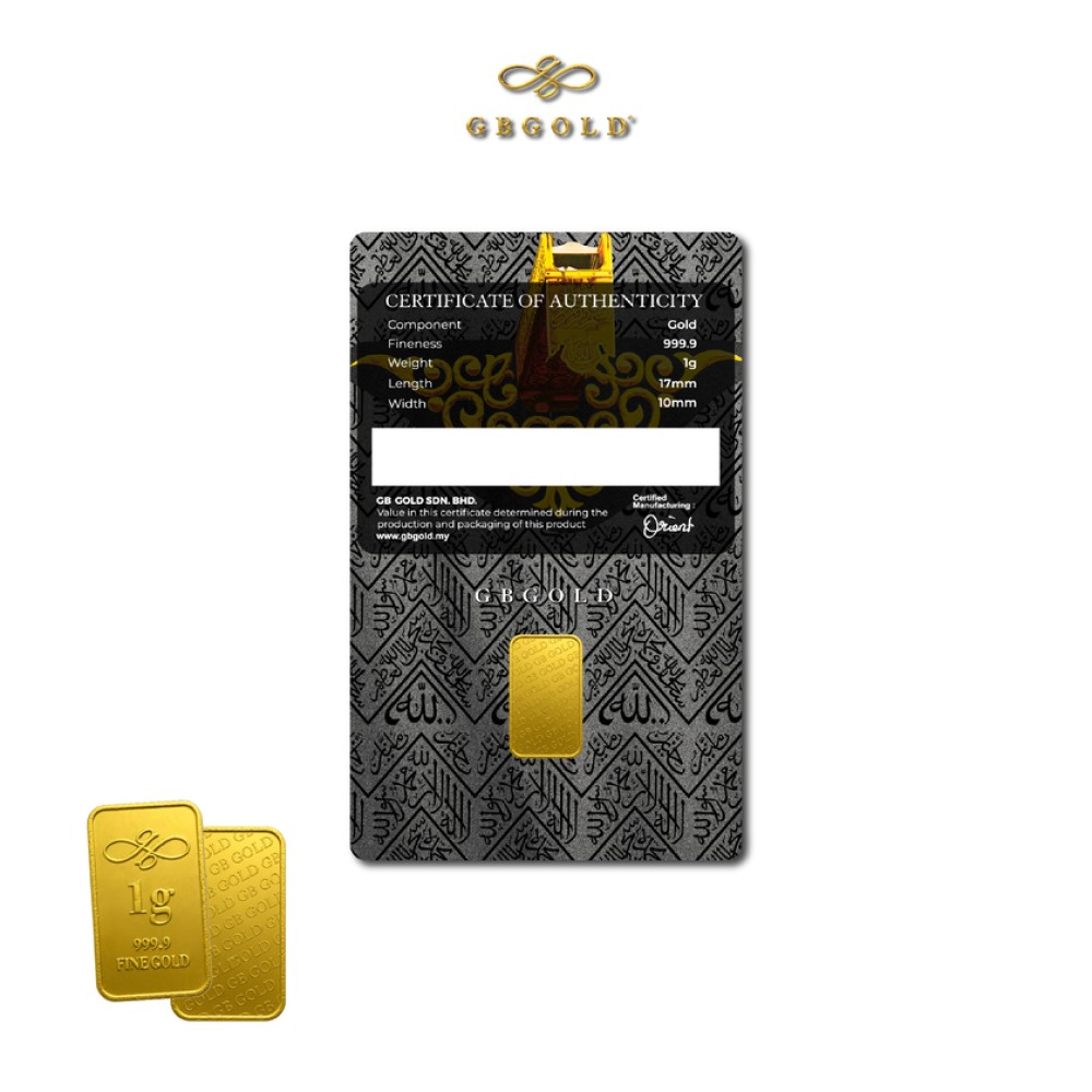 Introducing the GB GOLD Pancur Emas Gold Bar 1g (Emas 999.9), the perfect addition to your collection of gold decorations and accessories. Crafted with 999.9/24K purity, this gold bullion bar is a must-have for any discerning collector.