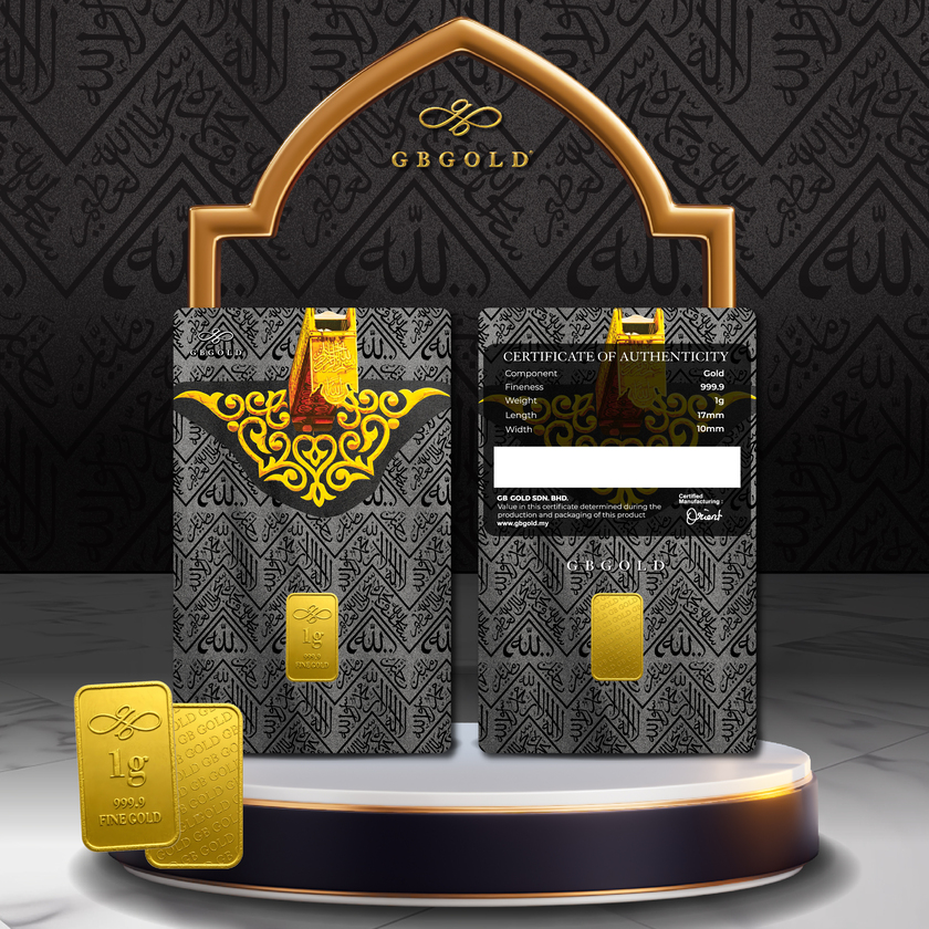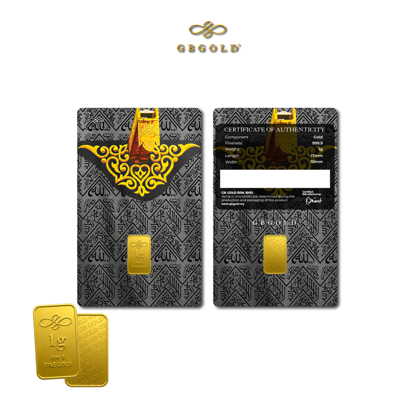 The GB GOLD Selawat Jibril Gold Bar is an elegant addition to any display case.