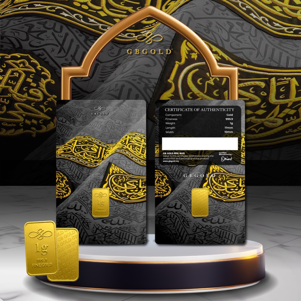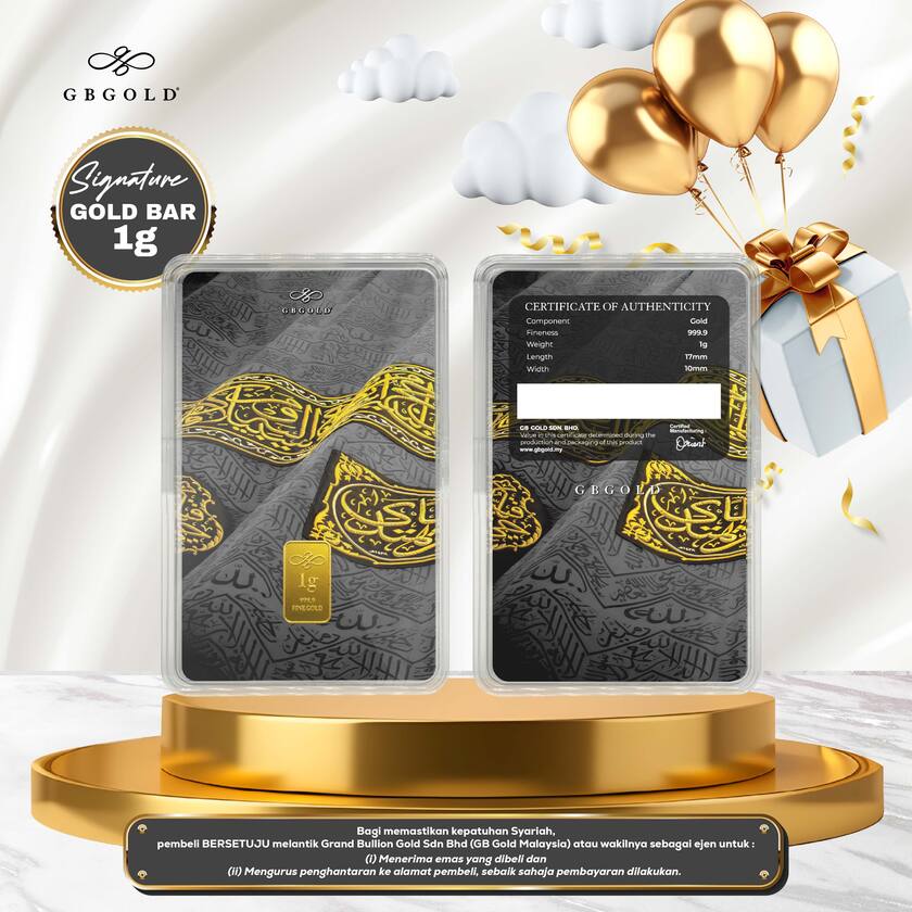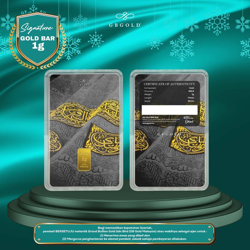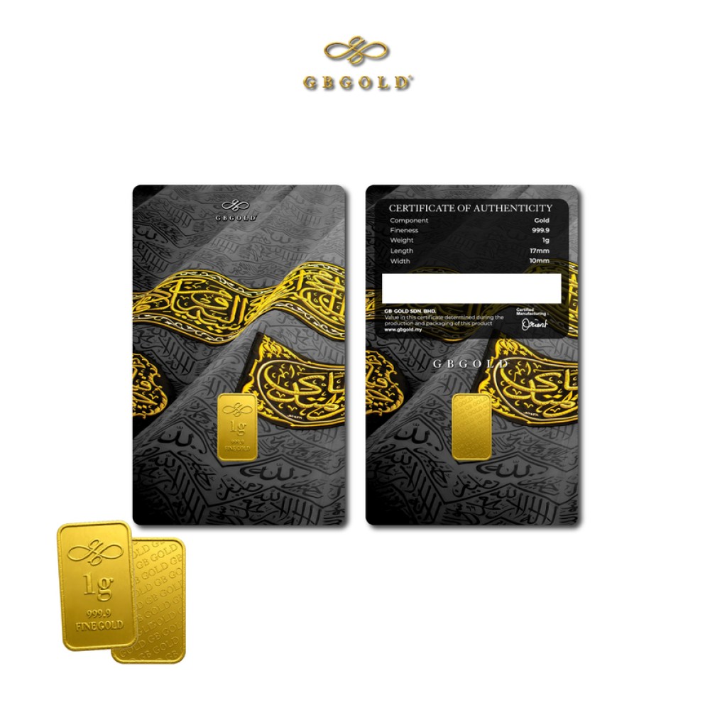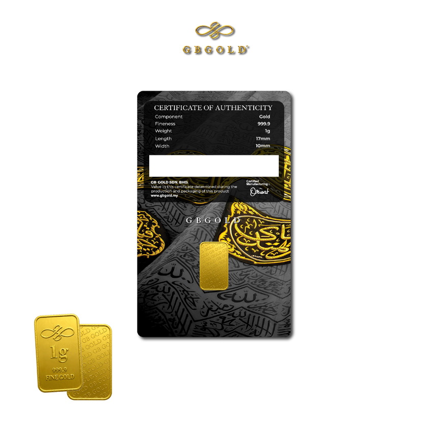 Introducing the GB GOLD Kiswah Gold Bar 1g (Emas 999.9), the perfect addition to your collection of gold decorations and accessories. Crafted with 999.9/24K purity, this gold bullion bar is a must-have for any discerning collector.