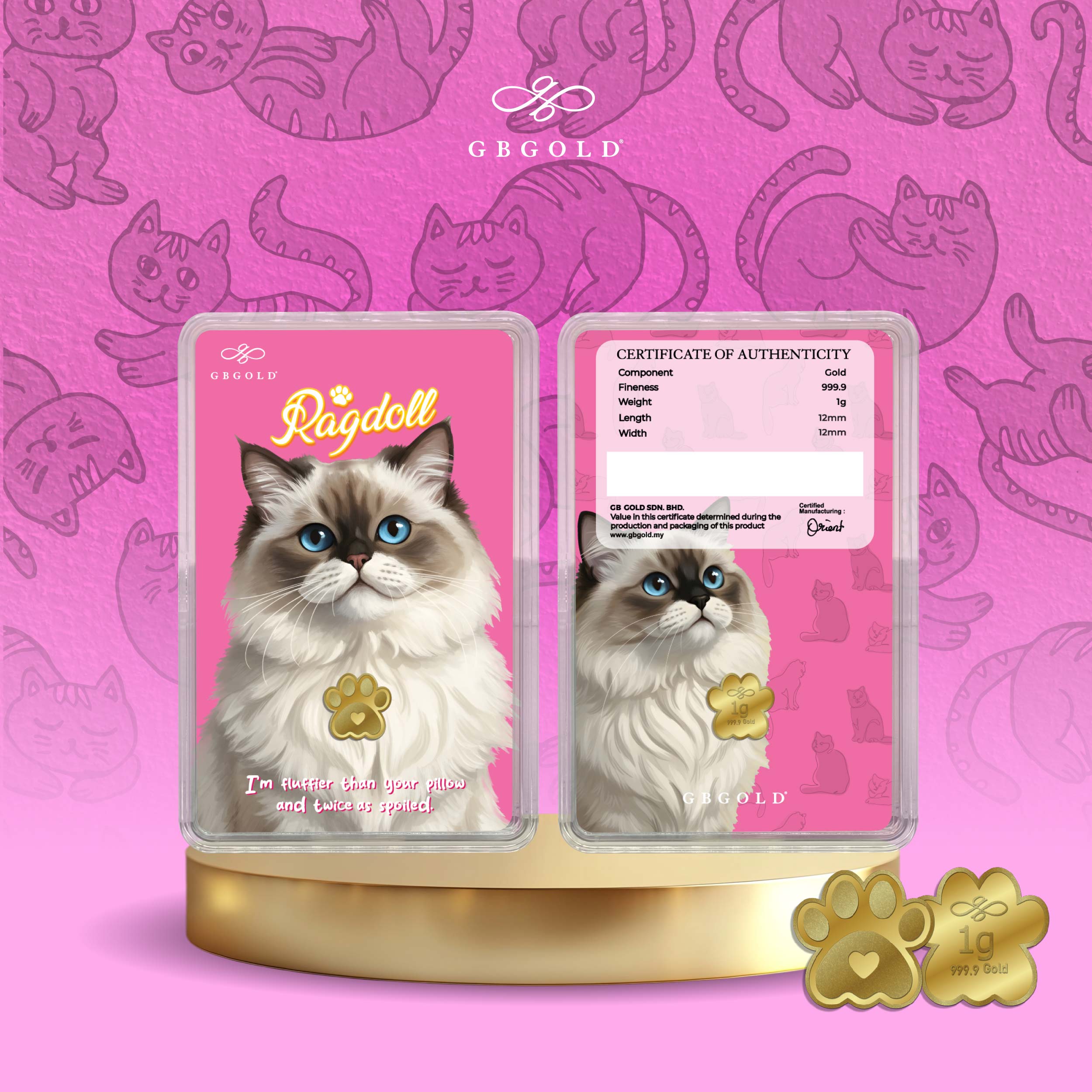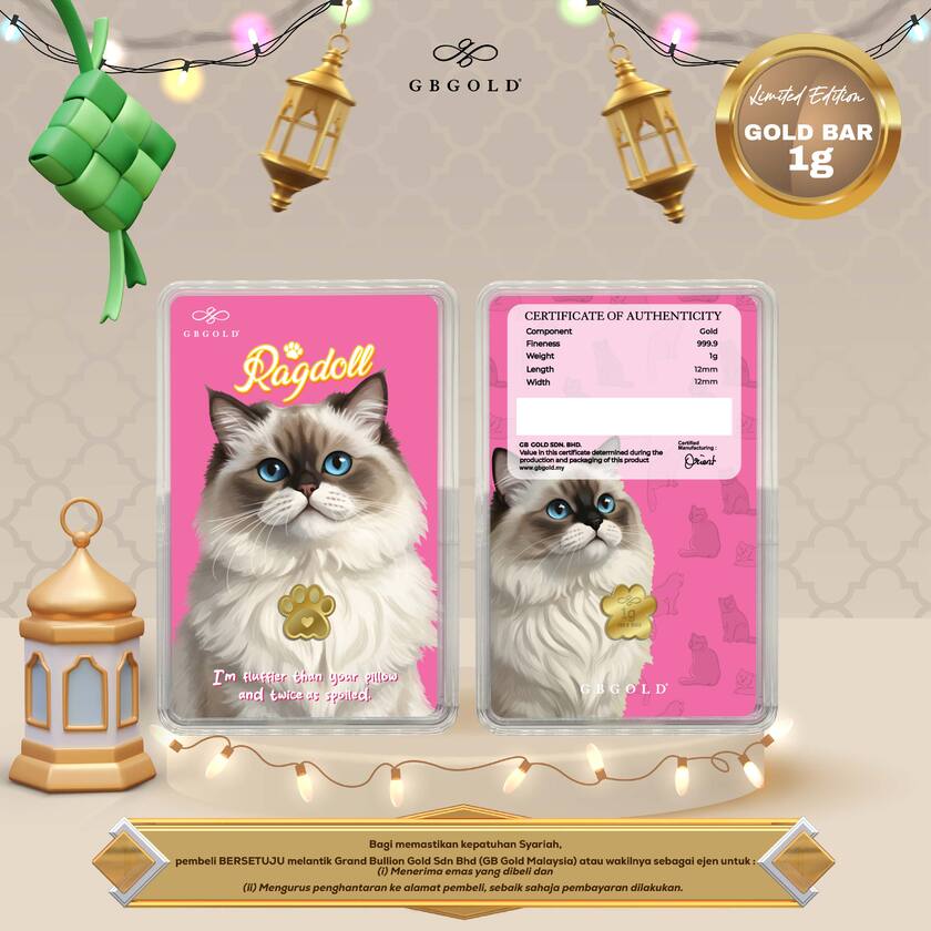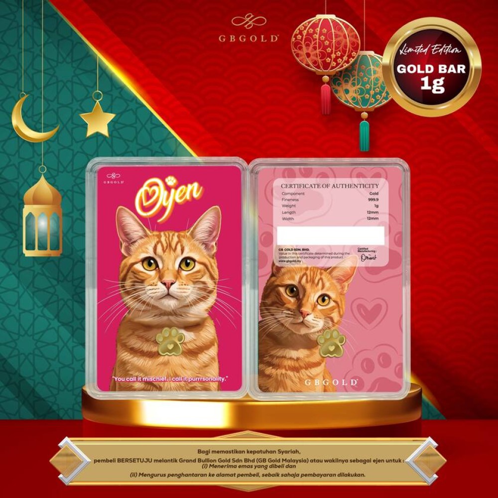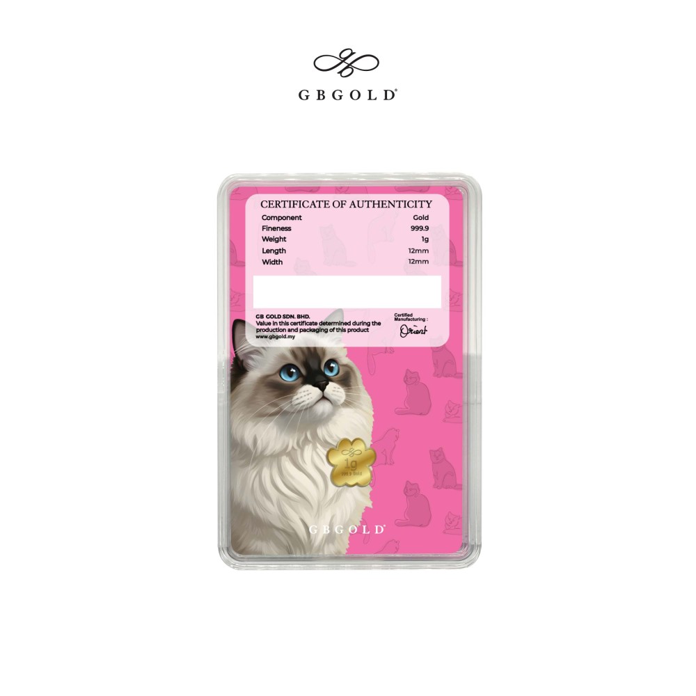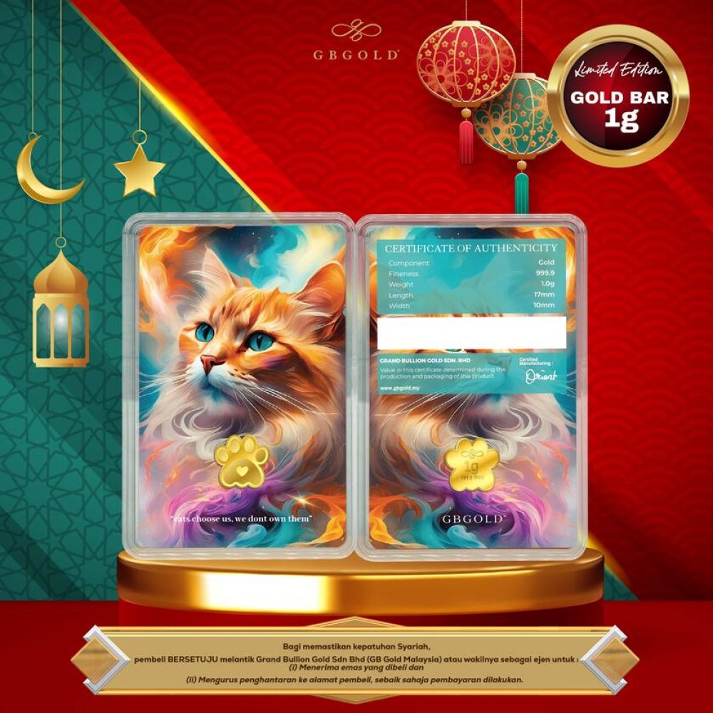 Introducing the GB Gold Cat British Gold Bar - 1g (Emas 999.9), the perfect addition to your collection of gold decorations and accessories. Crafted with 999.9/24K purity, this gold bullion bar is a must-have for any discerning collector.