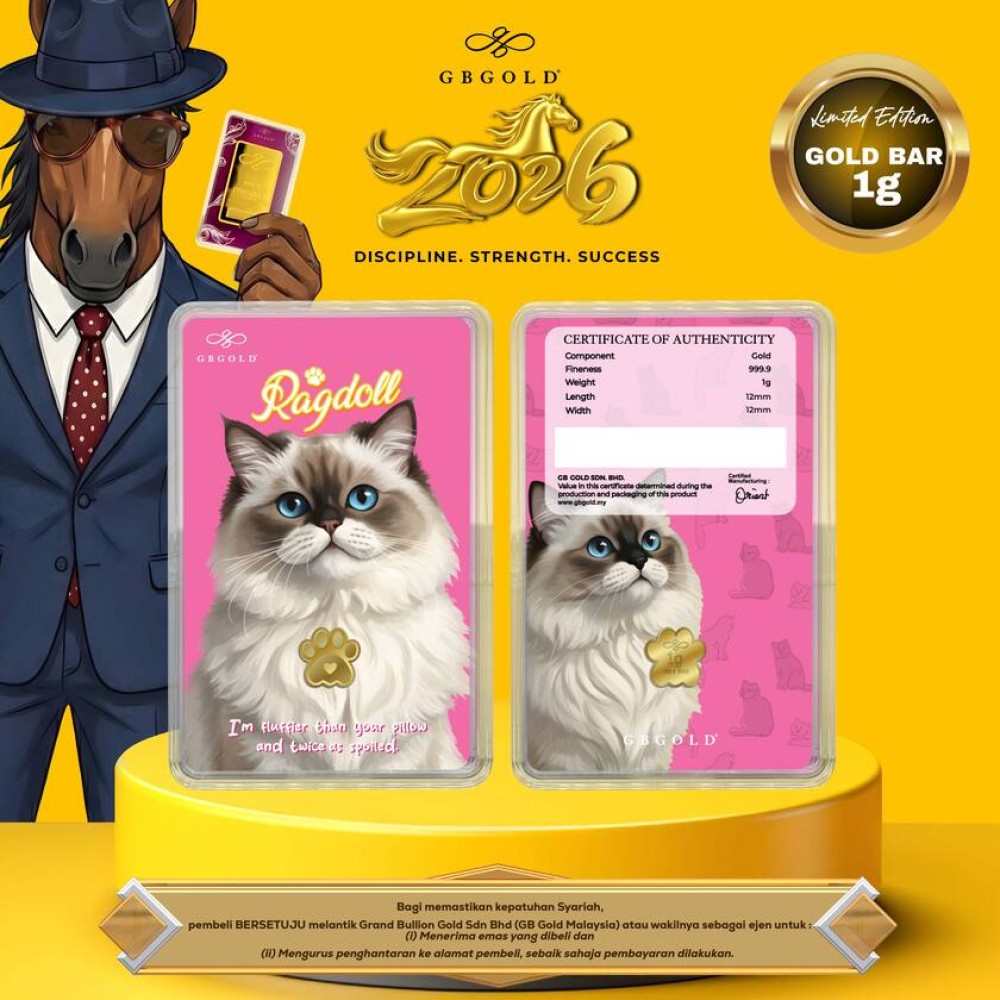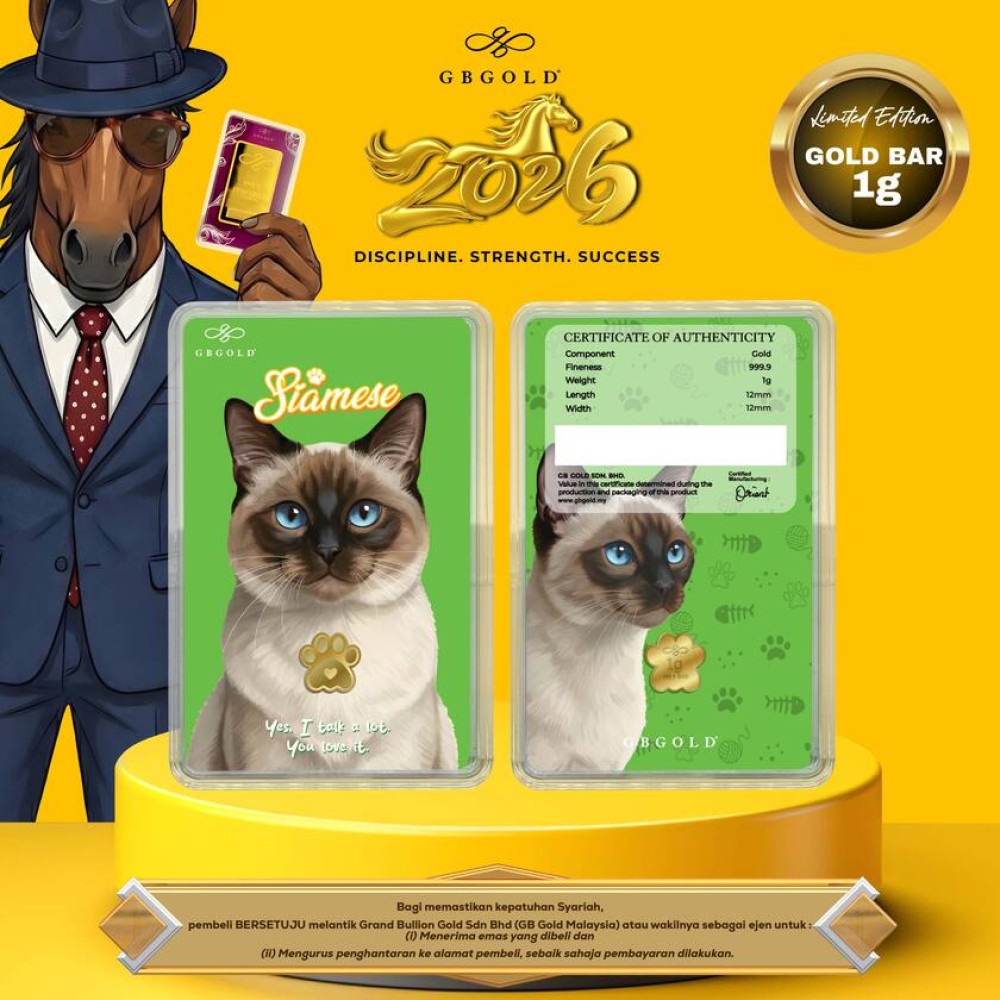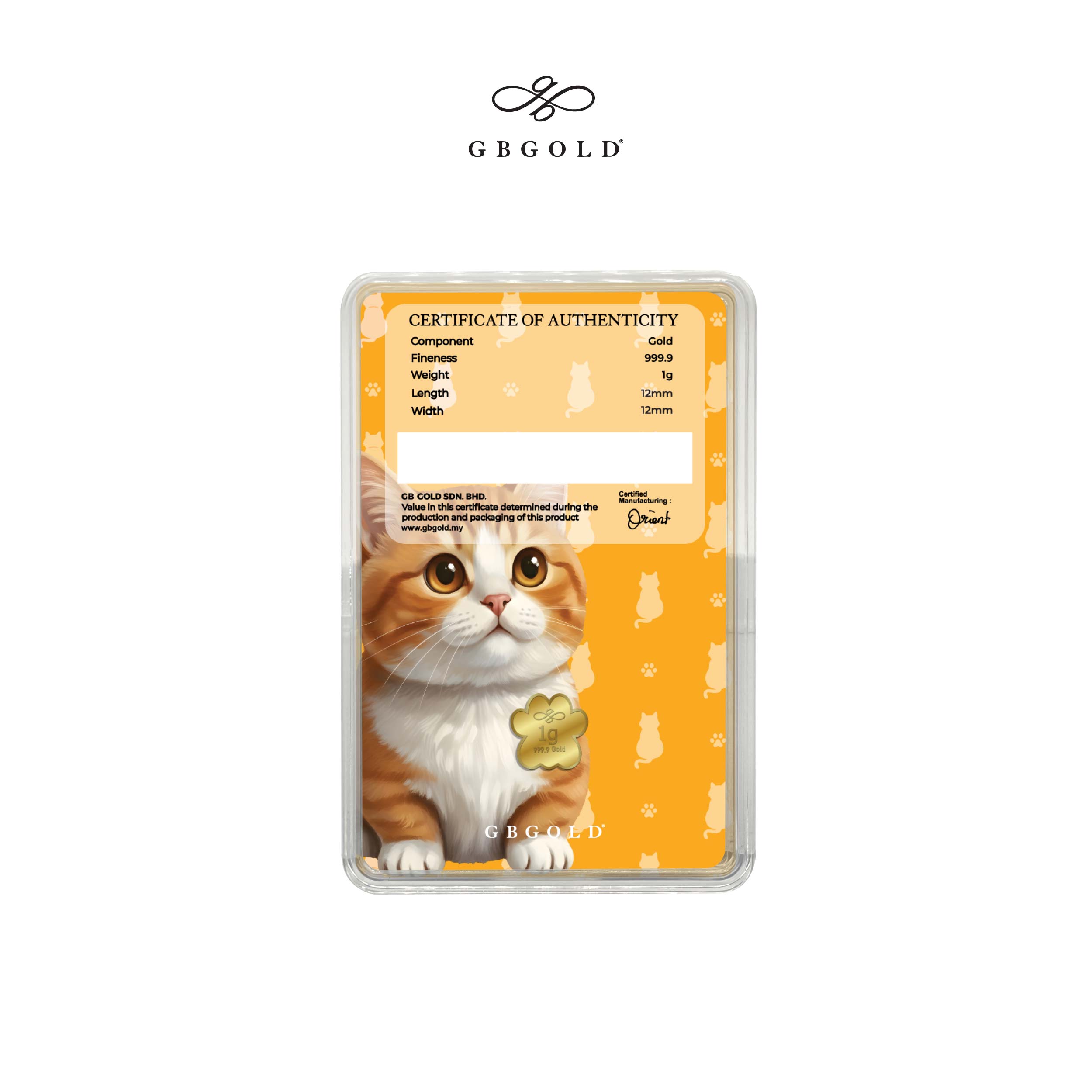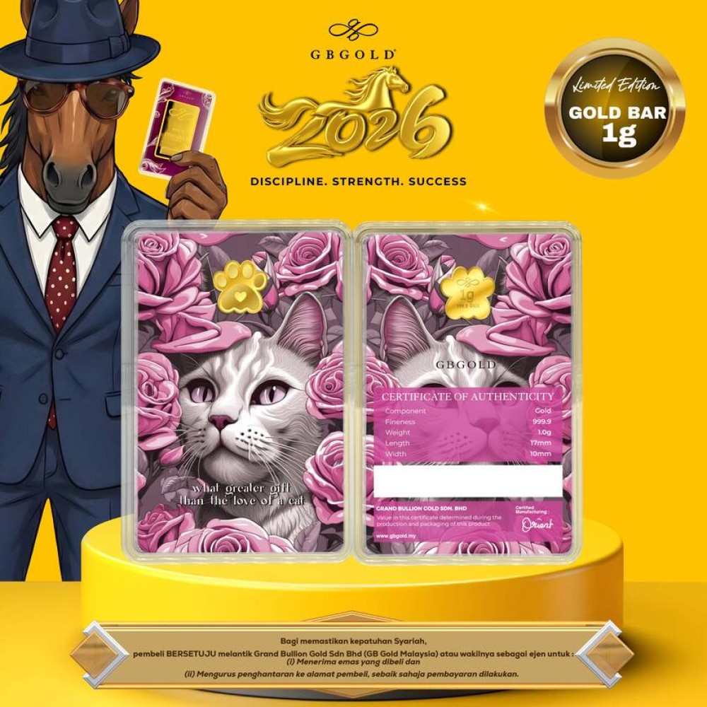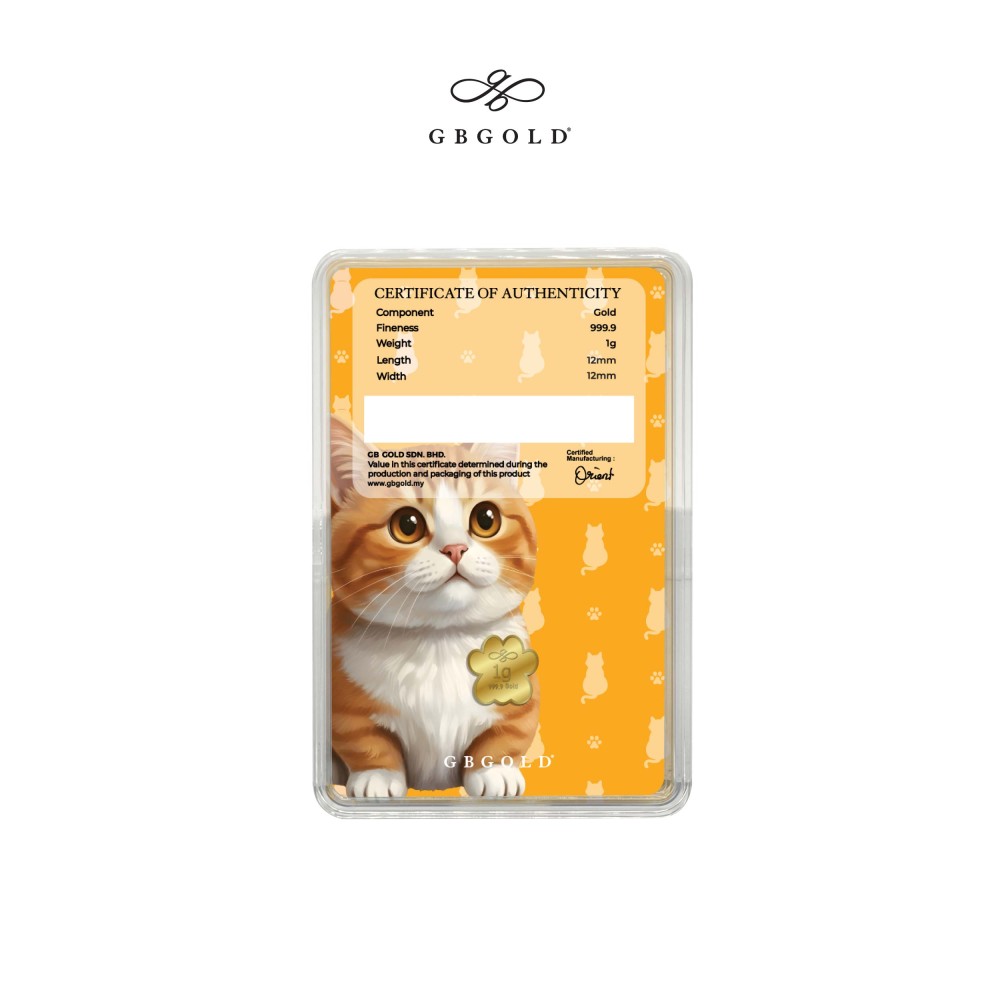 Introducing the GB Gold Cat British Gold Bar - 1g (Emas 999.9), the perfect addition to your collection of gold decorations and accessories. Crafted with 999.9/24K purity, this gold bullion bar is a must-have for any discerning collector.