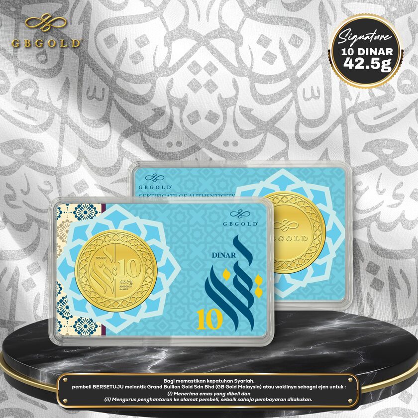 Introducing the GB GOLD Signature 1 Dinar 42.5gm (Emas 999.9), the perfect addition to your collection of gold decorations and accessories. Crafted with 999.9/24K purity, this gold dinar is a must-have for any discerning collector.