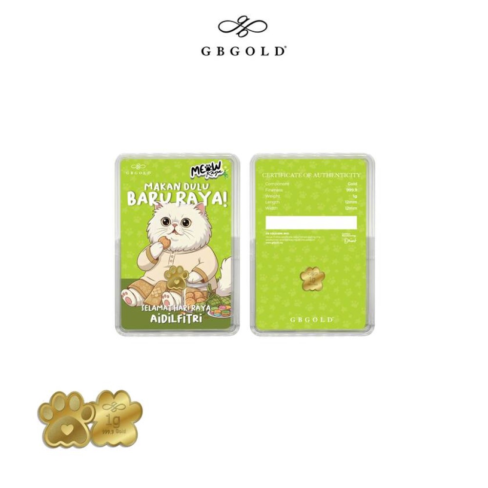 Introducing the GB Gold Cat Cookies Gold Bar - 1g (Emas 999.9), the perfect addition to your collection of gold decorations and accessories. Crafted with 999.9/24K purity, this gold bullion bar is a must-have for any discerning collector.