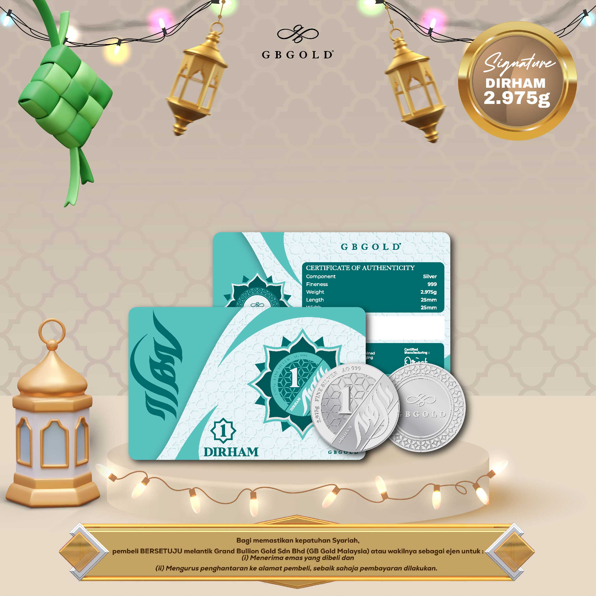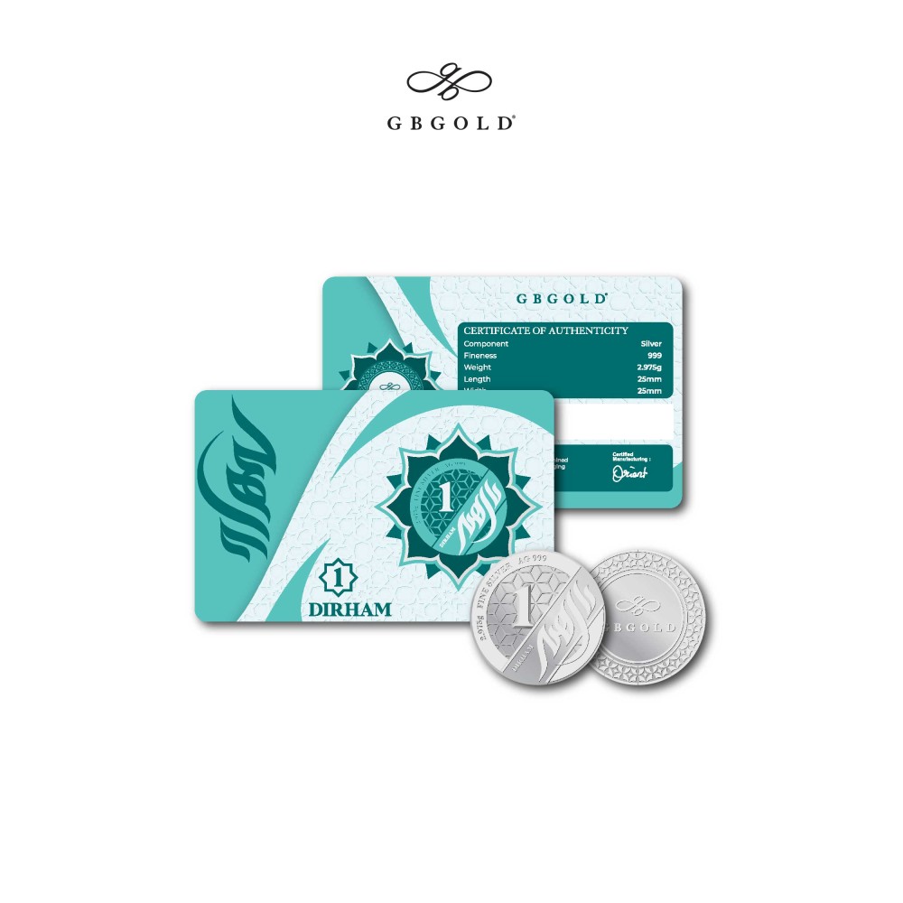 Introducing the GB GOLD 1 Dirham Silver, a symbol of heritage, purity, and lasting value. Struck with precision and encapsulated in an elegant, Islamic-inspired certificate card, this Dirham is designed for collectors, investors, and those who appreciate meaningful gifts rooted in tradition.