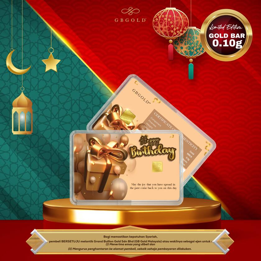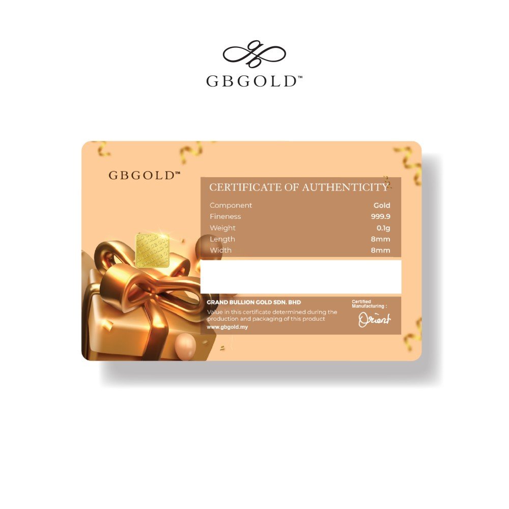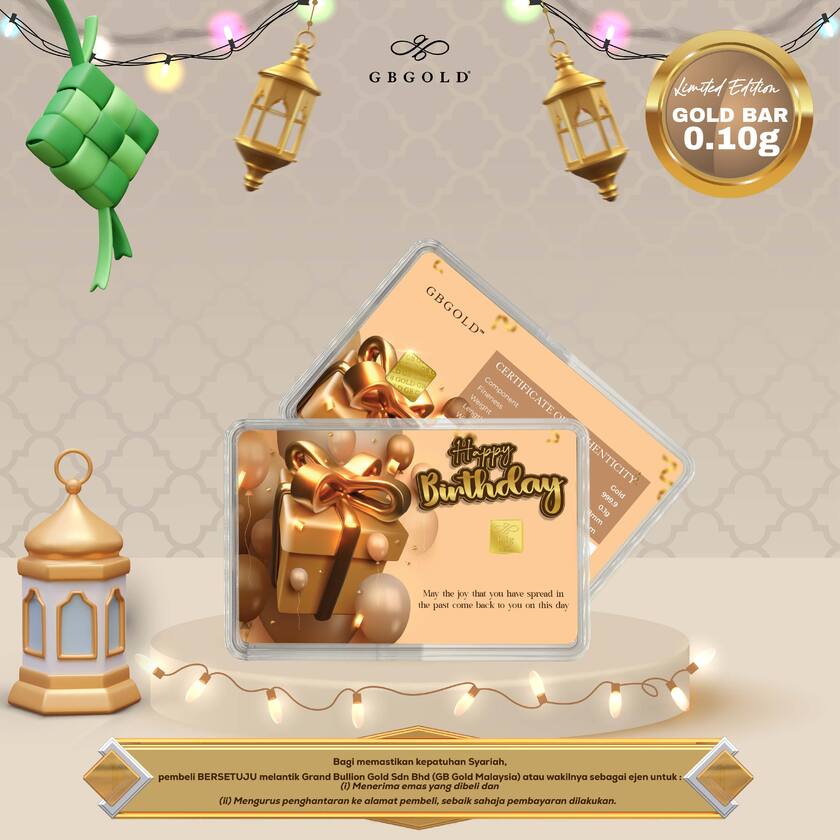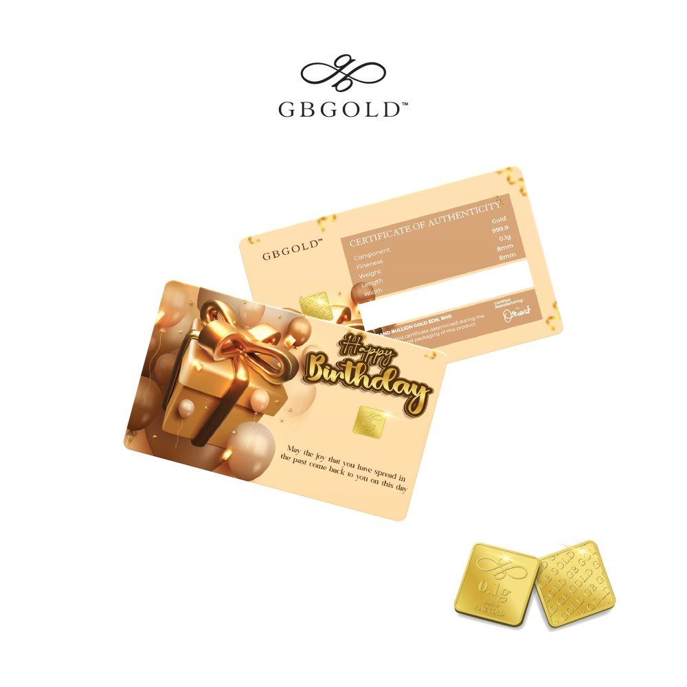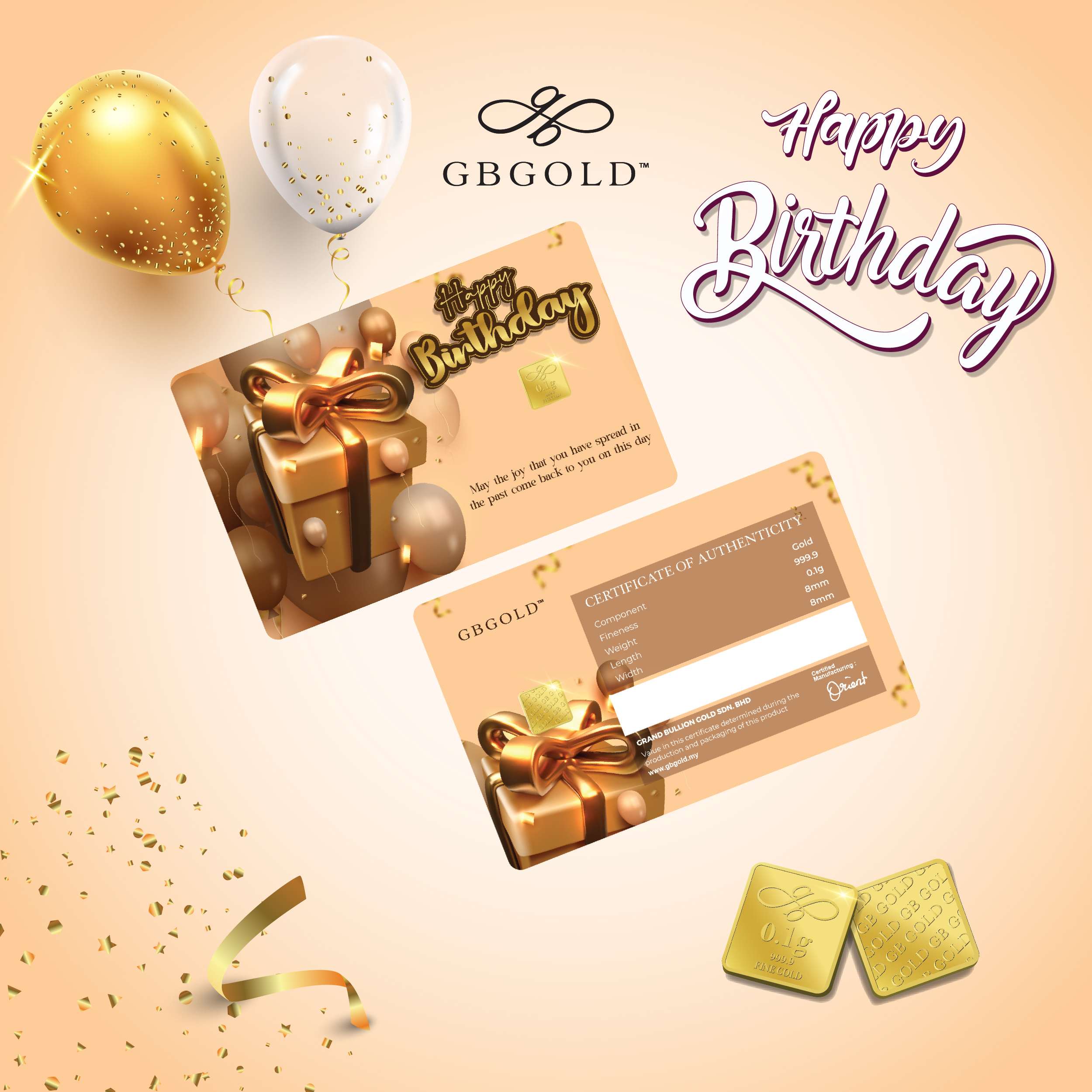 Introducing the GB GOLD Birthday Brown Gold Bar 0.1g (Emas 999.9), the perfect addition to your collection of gold decorations and accessories. Crafted with 999.9/24K purity, this gold bullion bar is a must-have for any discerning collector.