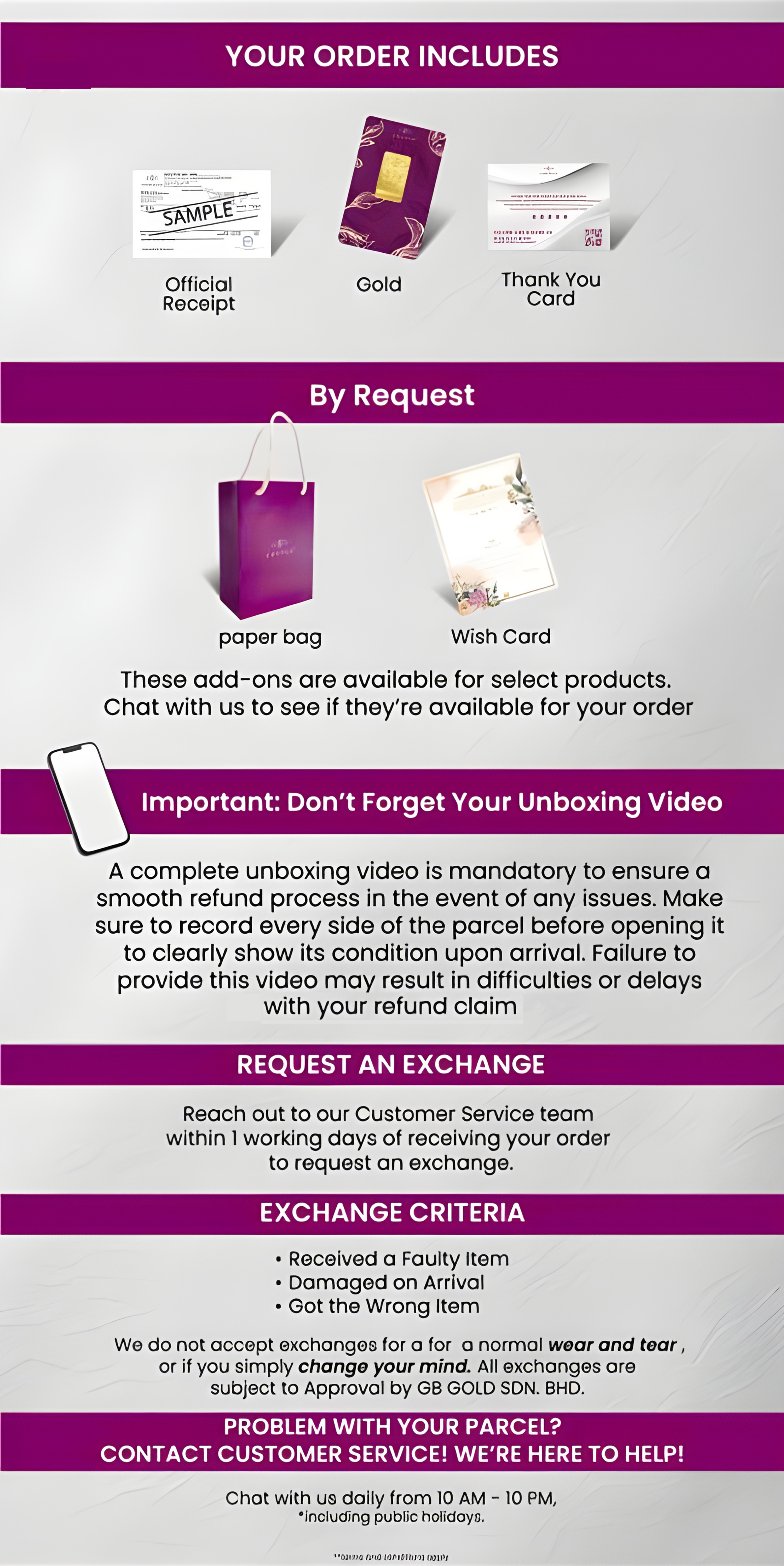 Bagi memastikan transaksi jual beli ini dijalankan secara patuh Syariah, sejurus pembelian dan pembayaran dibuat, dengan ini pembeli BERSETUJU melantik GB Gold Malaysia atau wakilnya sebagai ejen Pembeli untuk tujuan