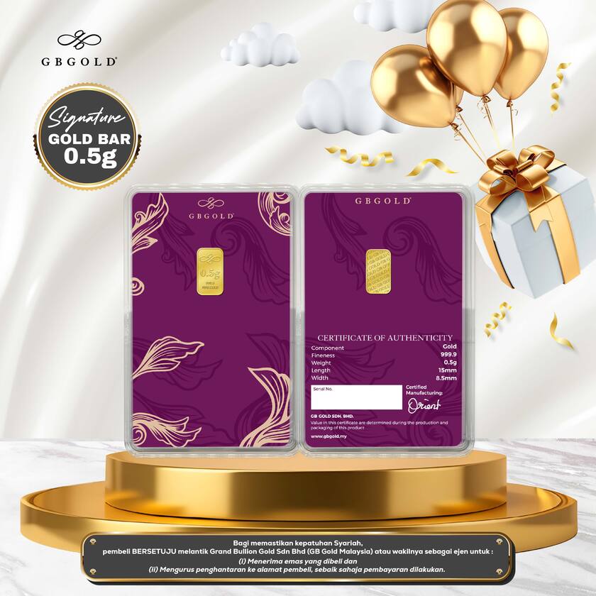 Introducing the GB GOLD Signature Gold Bar 0.5g (Emas 999.9), the perfect addition to your collection of gold decorations and accessories. Crafted with 999.9/24K purity, this gold bullion bar is a must-have for any discerning collector.