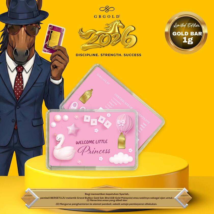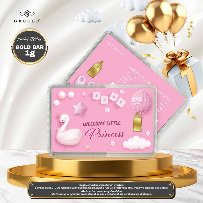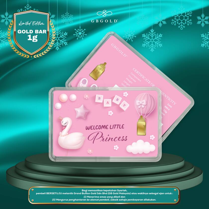 Introducing the GB Gold Welcome Princess Bottle Gold Bar 1g (Emas 999.9), the perfect addition to your collection of gold decorations and accessories. Crafted with 999.9/24K purity, this gold bullion bar is a must-have for any discerning collector.