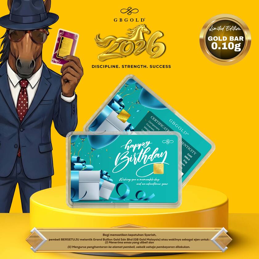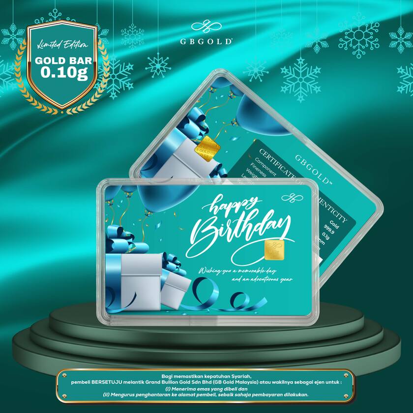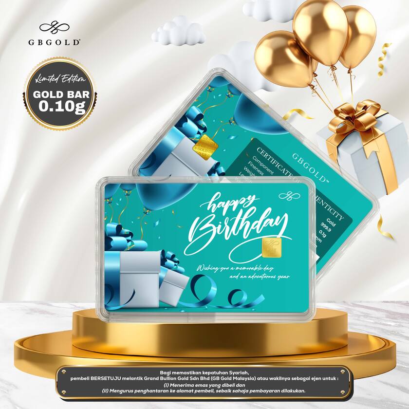 Introducing the GB GOLD Happy Birthday Tiffany Blue Gold Bar 0.1g (Emas 999.9), the perfect addition to your collection of gold decorations and accessories. Crafted with 999.9/24K purity, this gold bullion bar is a must-have for any discerning collector.
