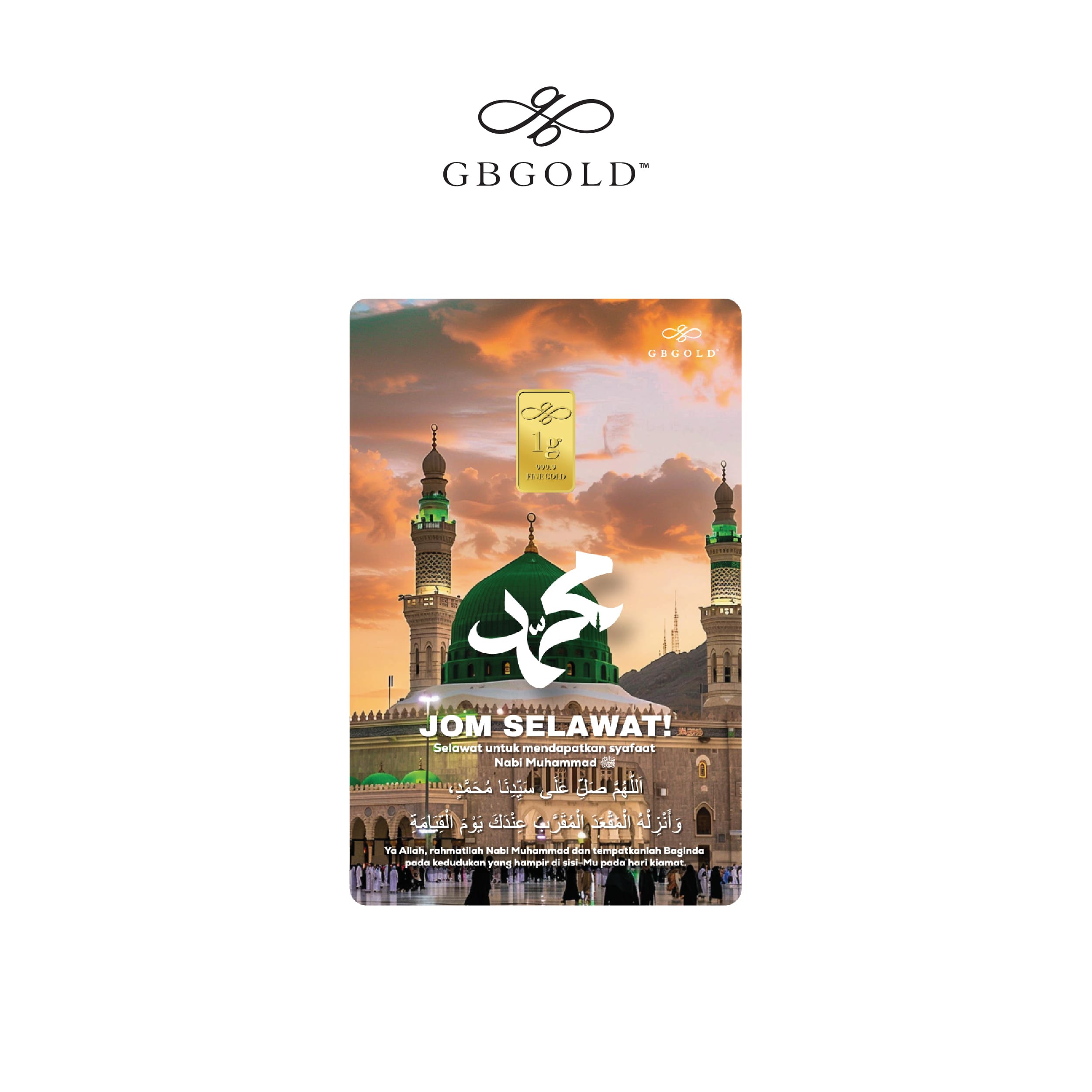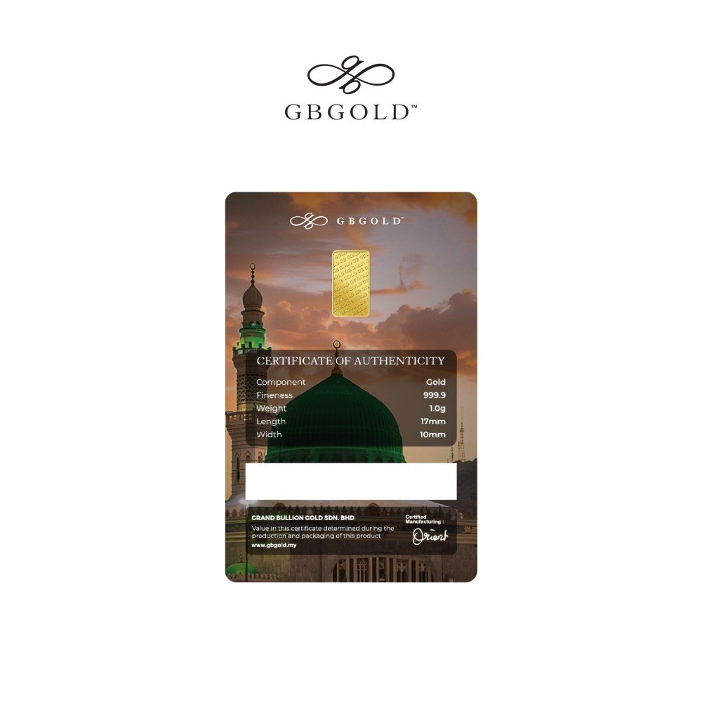 Introducing the GB Gold Selawat Syafaat Gold Bar 1g (Emas 999.9), the perfect addition to your collection of gold decorations and accessories. Crafted with 999.9/24K purity, this gold bullion bar is a must-have for any discerning collector.