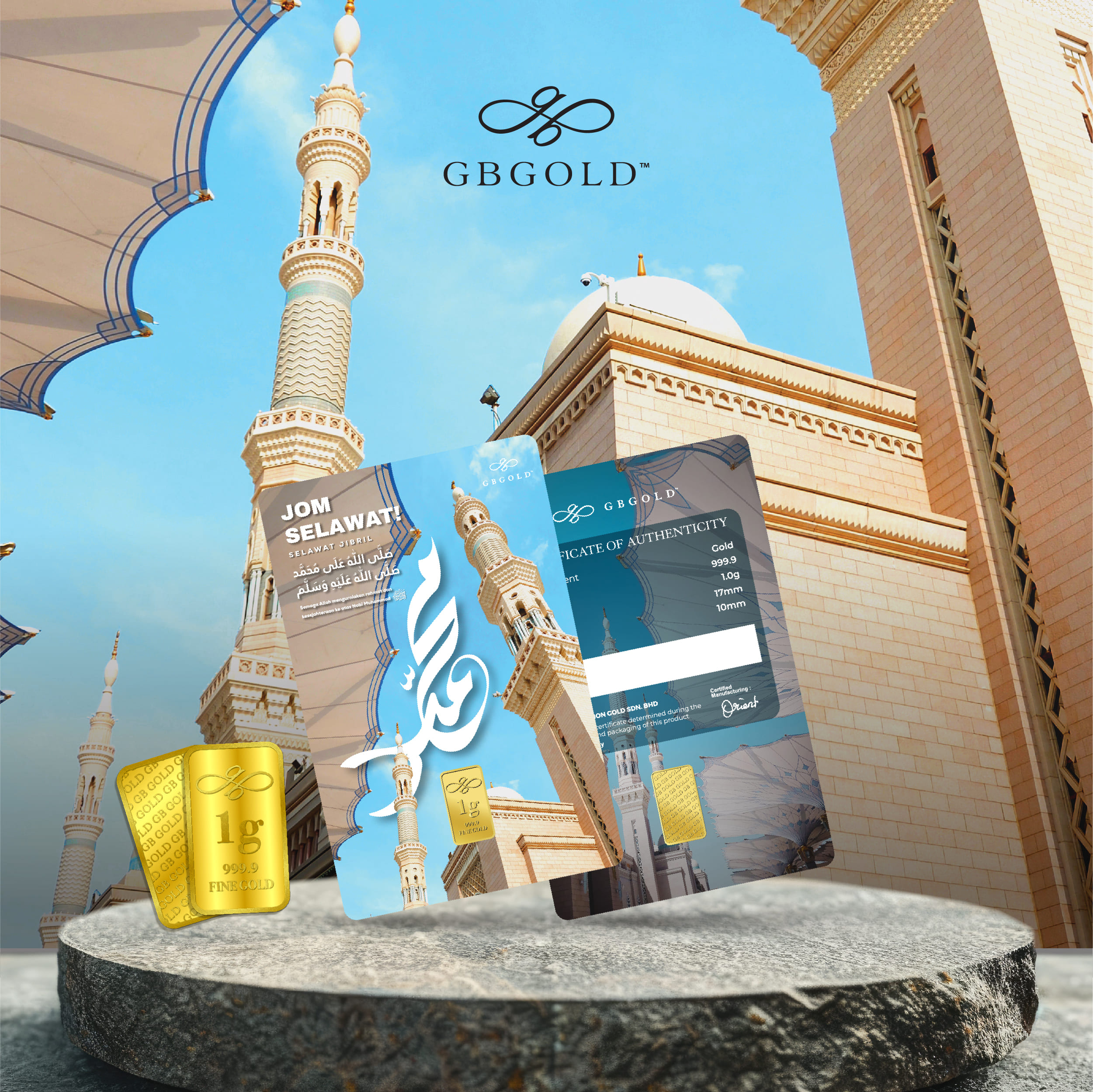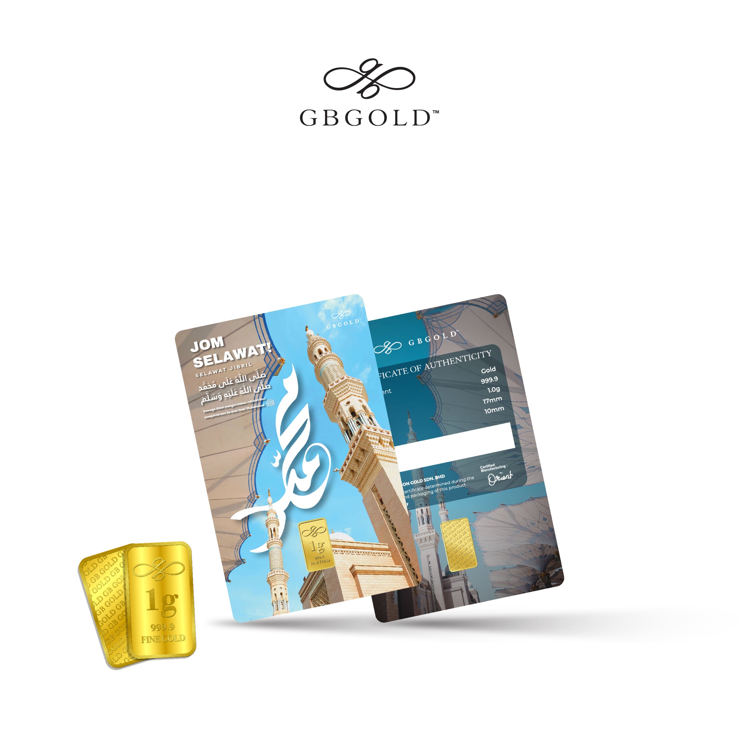 Introducing the GB GOLD Selawat Jibril Gold Bar 1g (Emas 999.9), the perfect addition to your collection of gold decorations and accessories. Crafted with 999.9/24K purity, this gold bullion bar is a must-have for any discerning collector.