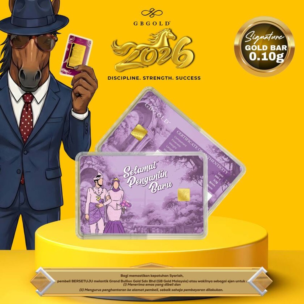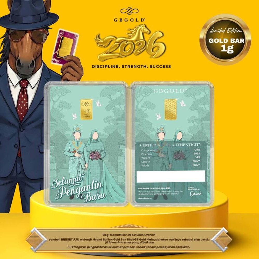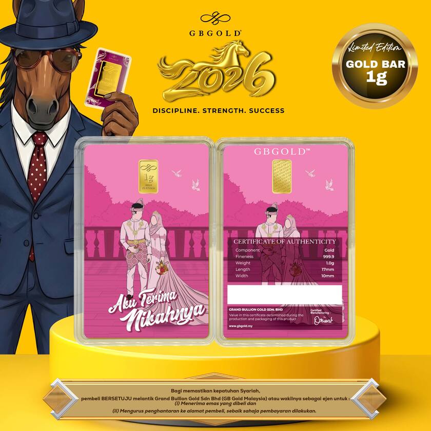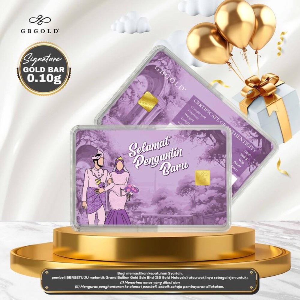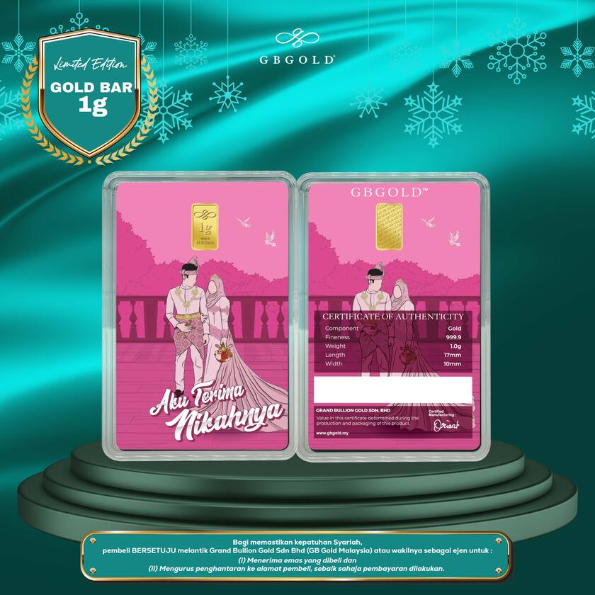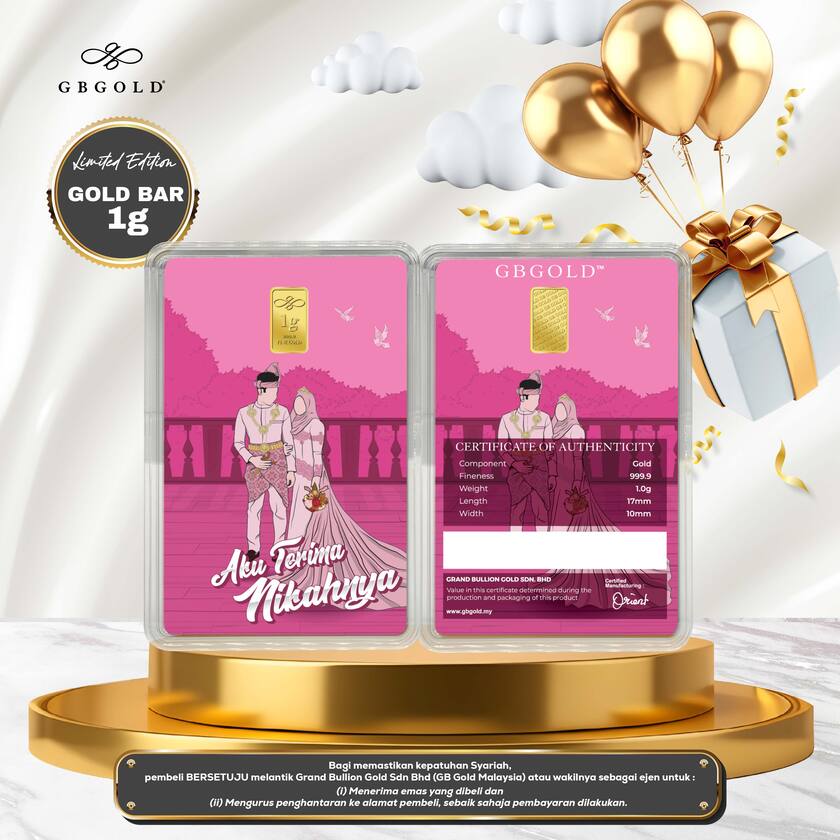 Introducing the GB Gold Aku Terima Nikahnya Pink Gold Bar 1g (Emas 999.9), the perfect addition to your collection of gold decorations and accessories. Crafted with 999.9/24K purity, this gold bullion bar is a must-have for any discerning collector.