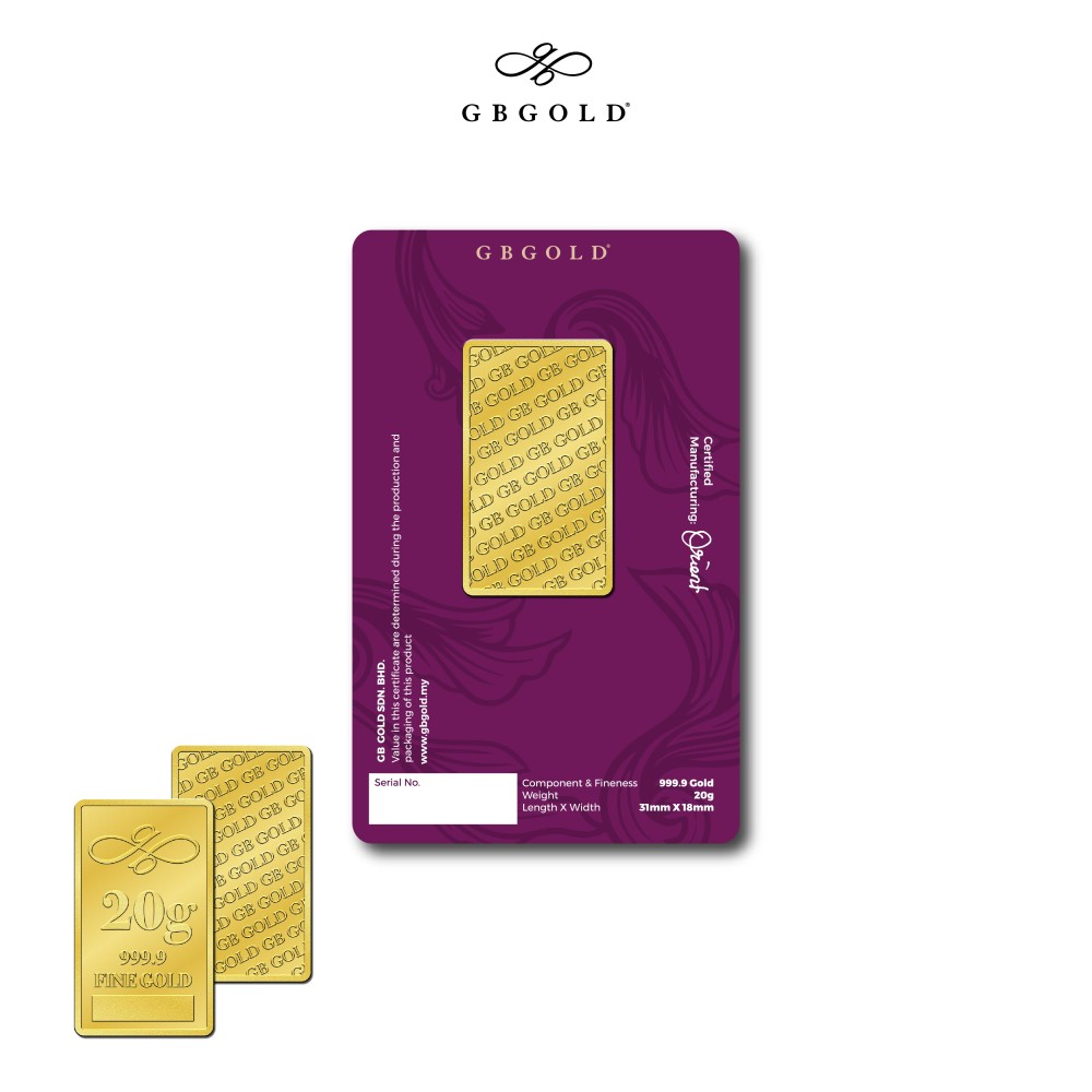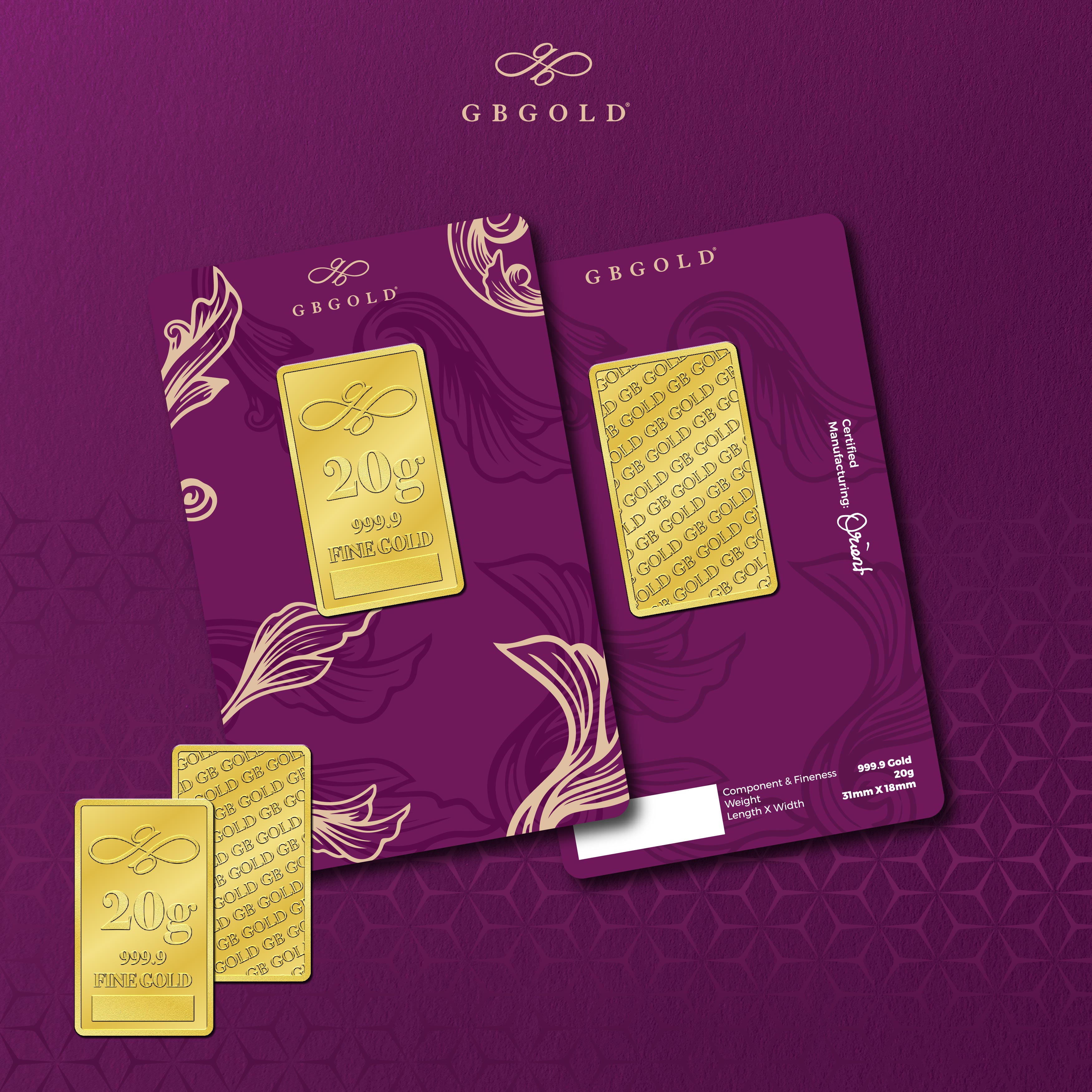 Introducing the GB GOLD Signature Gold Bar 20g (Emas 999.9), the perfect addition to your collection of gold decorations and accessories. Crafted with 999.9/24K purity, this gold bullion bar is a must-have for any discerning collector.