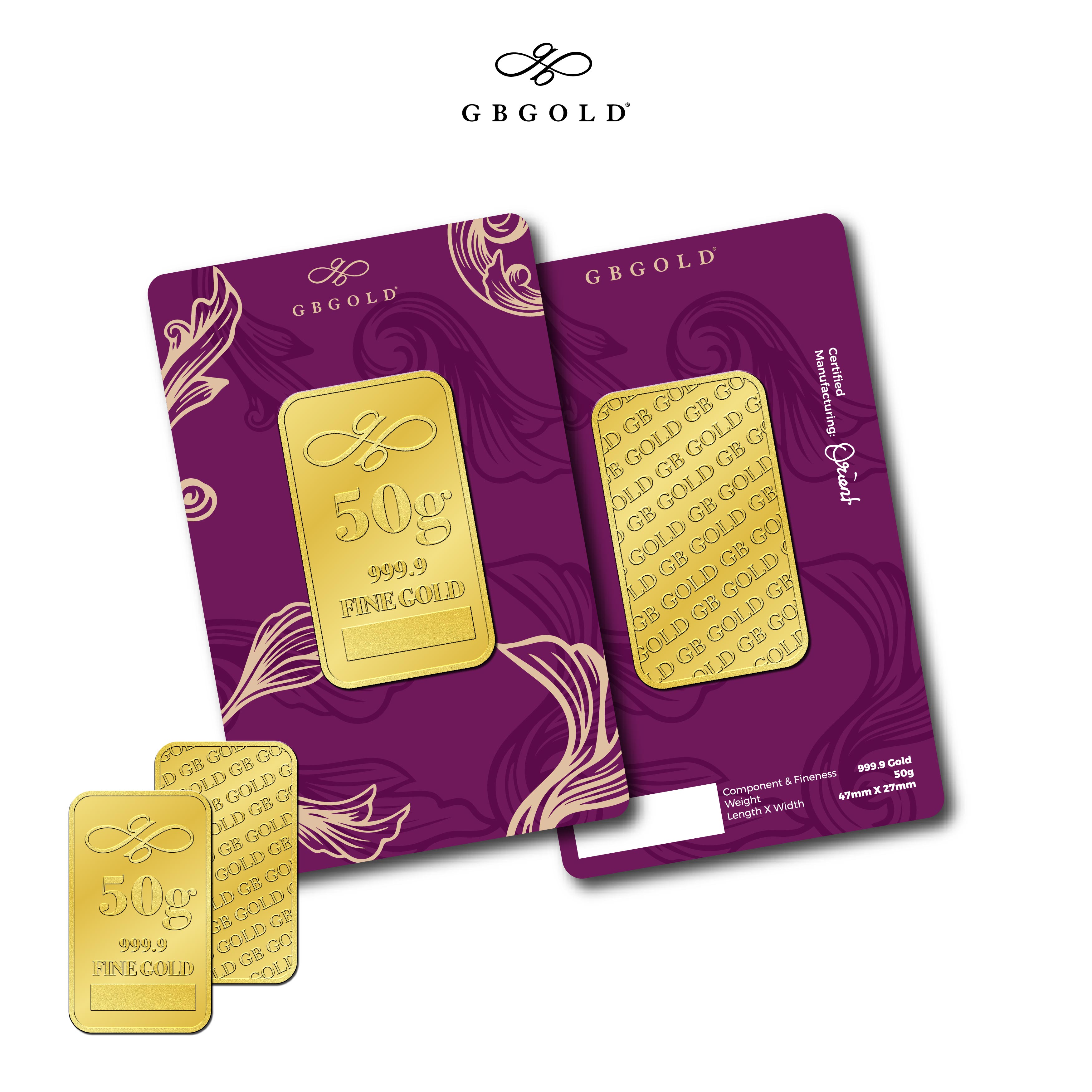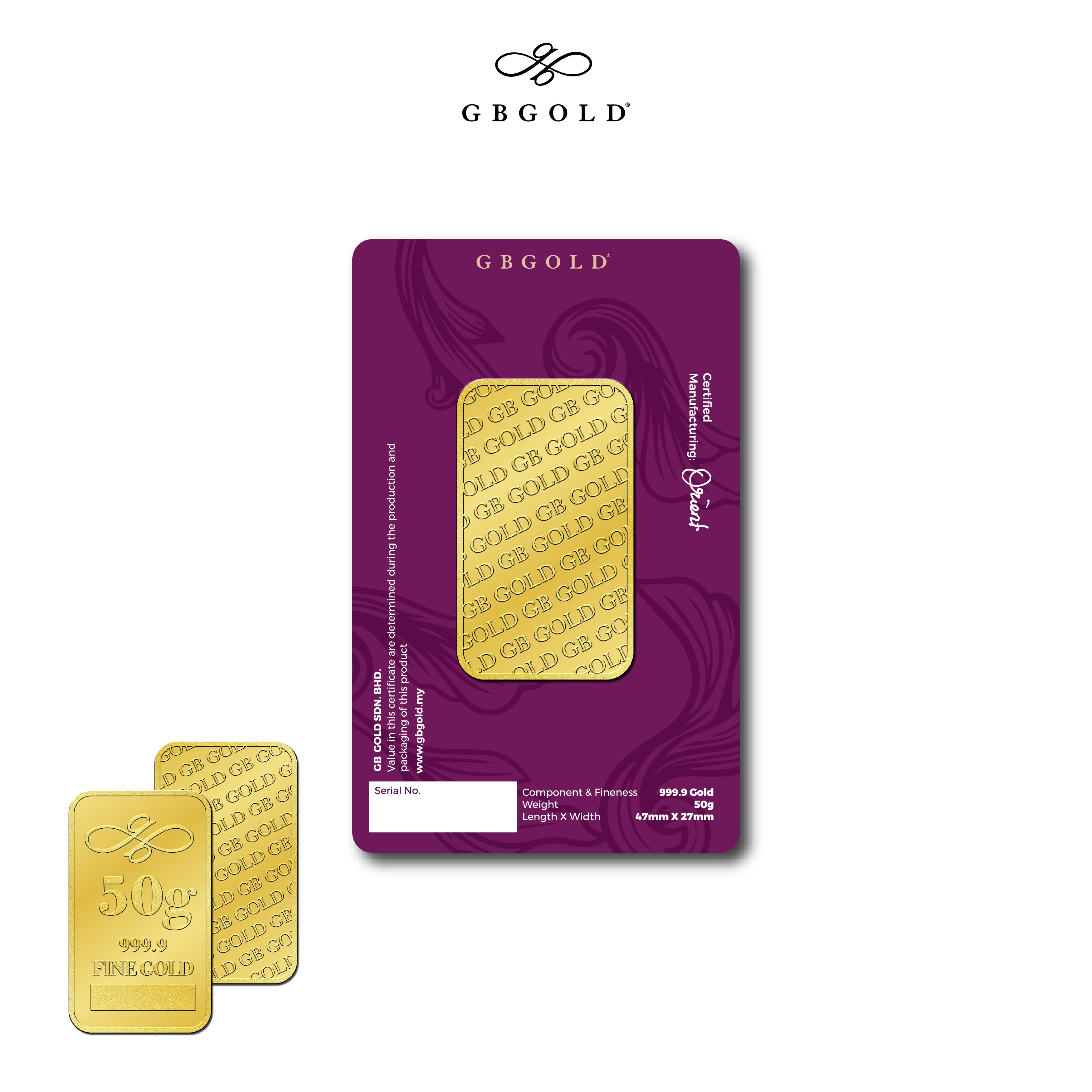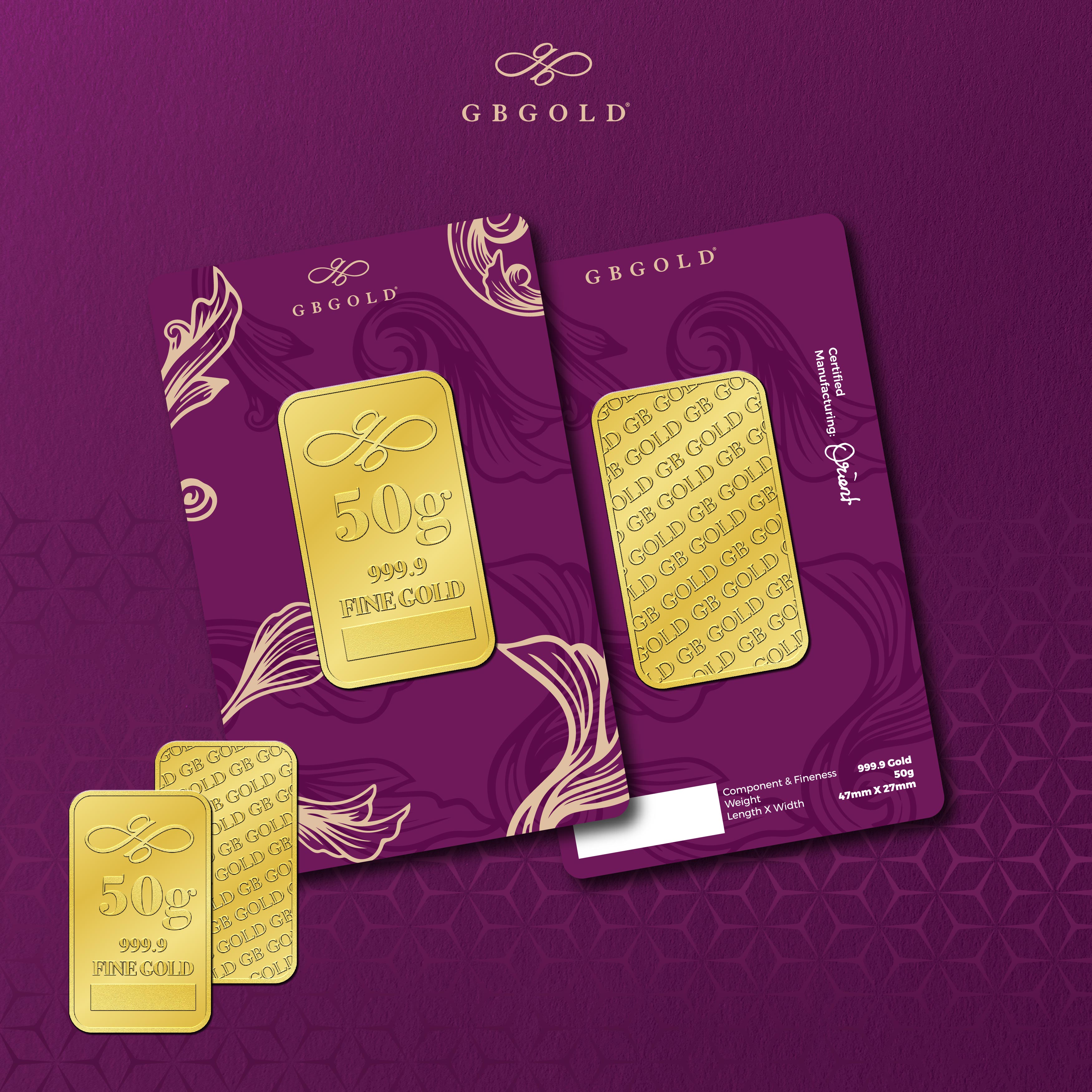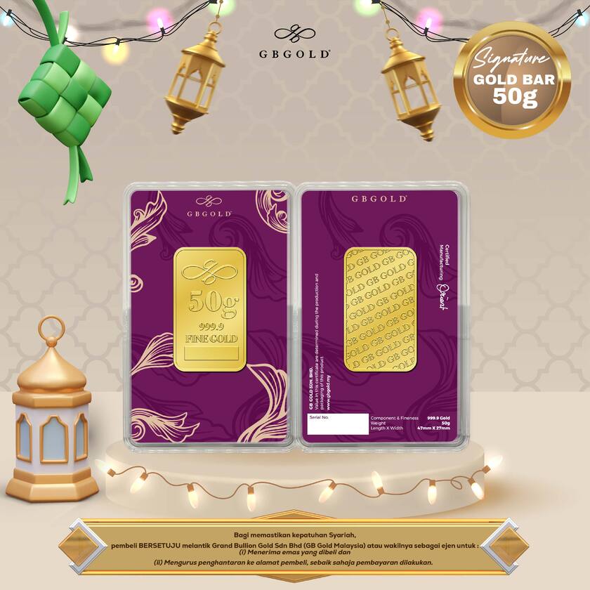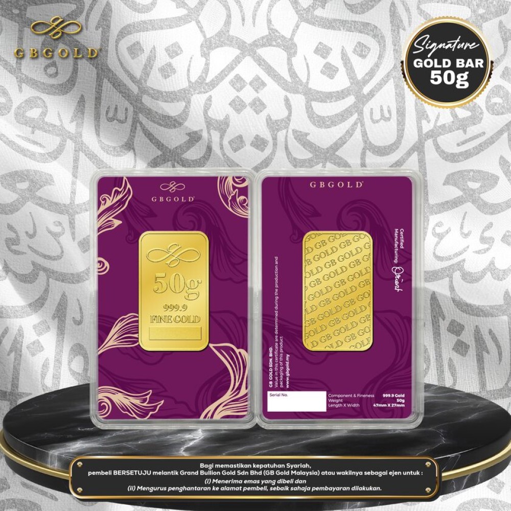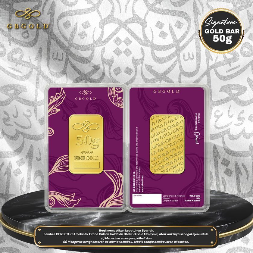 Introducing the GB GOLD Signature Gold Bar 50g (Emas 999.9), the perfect addition to your collection of gold decorations and accessories. Crafted with 999/24K purity, this gold bullion bar is a must-have for any discerning collector.