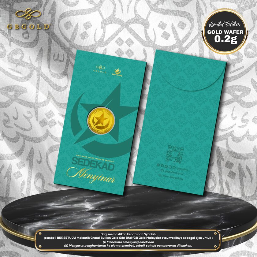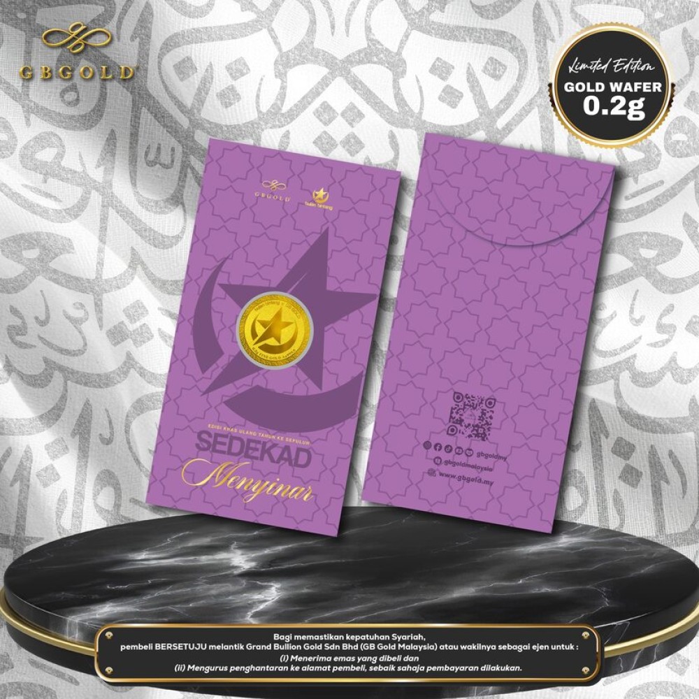 Introducing the GB GOLD X BULAN BINTANG 0.2g Gold Wafer (Emas 999.9), Terpaling Raya Edition, the perfect addition to your collection of gold decorations and accessories. Crafted with 999.9/24K purity, this gold is a must-have for any discerning collector.