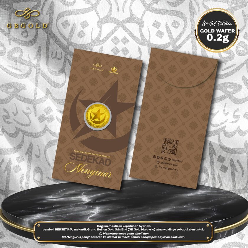 Introducing the GB GOLD X BULAN BINTANG 0.2g Gold Wafer (Emas 999.9), Terpaling Raya Edition, the perfect addition to your collection of gold decorations and accessories. Crafted with 999.9/24K purity, this gold is a must-have for any discerning collector.