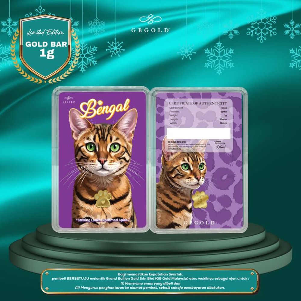 GB Gold Cat Bengal Gold Bar - 1g Gold Bar