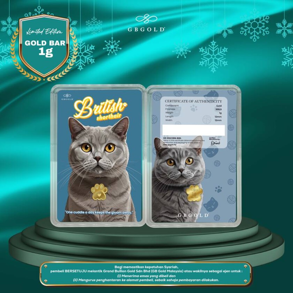 GB Gold Cat British Gold Bar - 1g Gold Bar